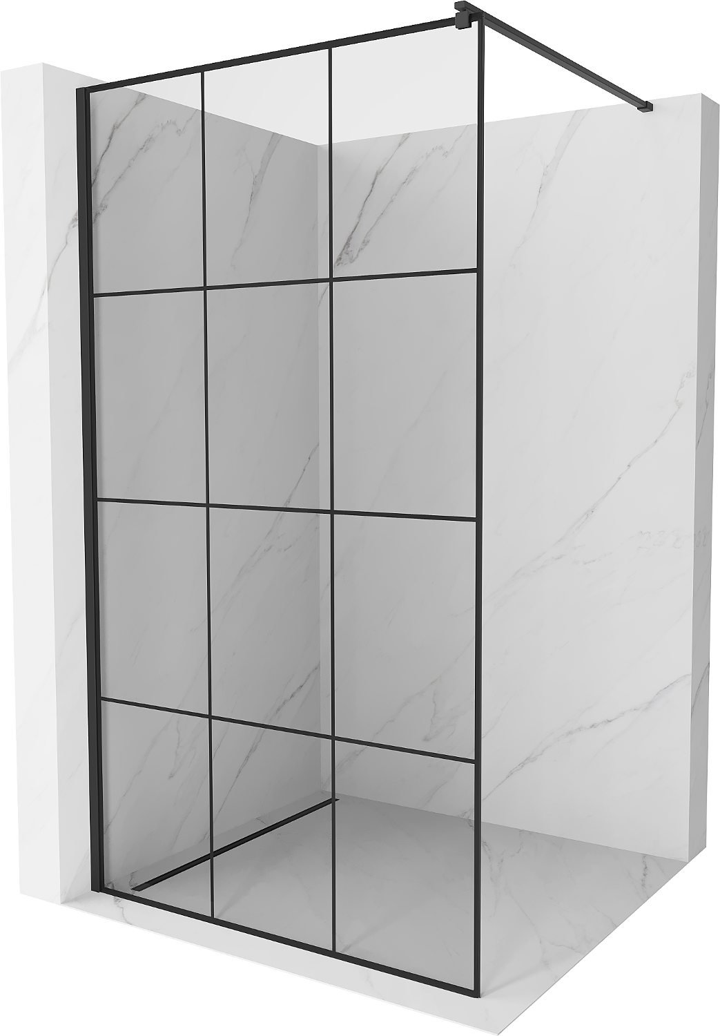 Mexen Kioto Walk-in Shower Panel 100 x 200 cm, Black Grid 8 mm, Black - 800-100-101-70-77