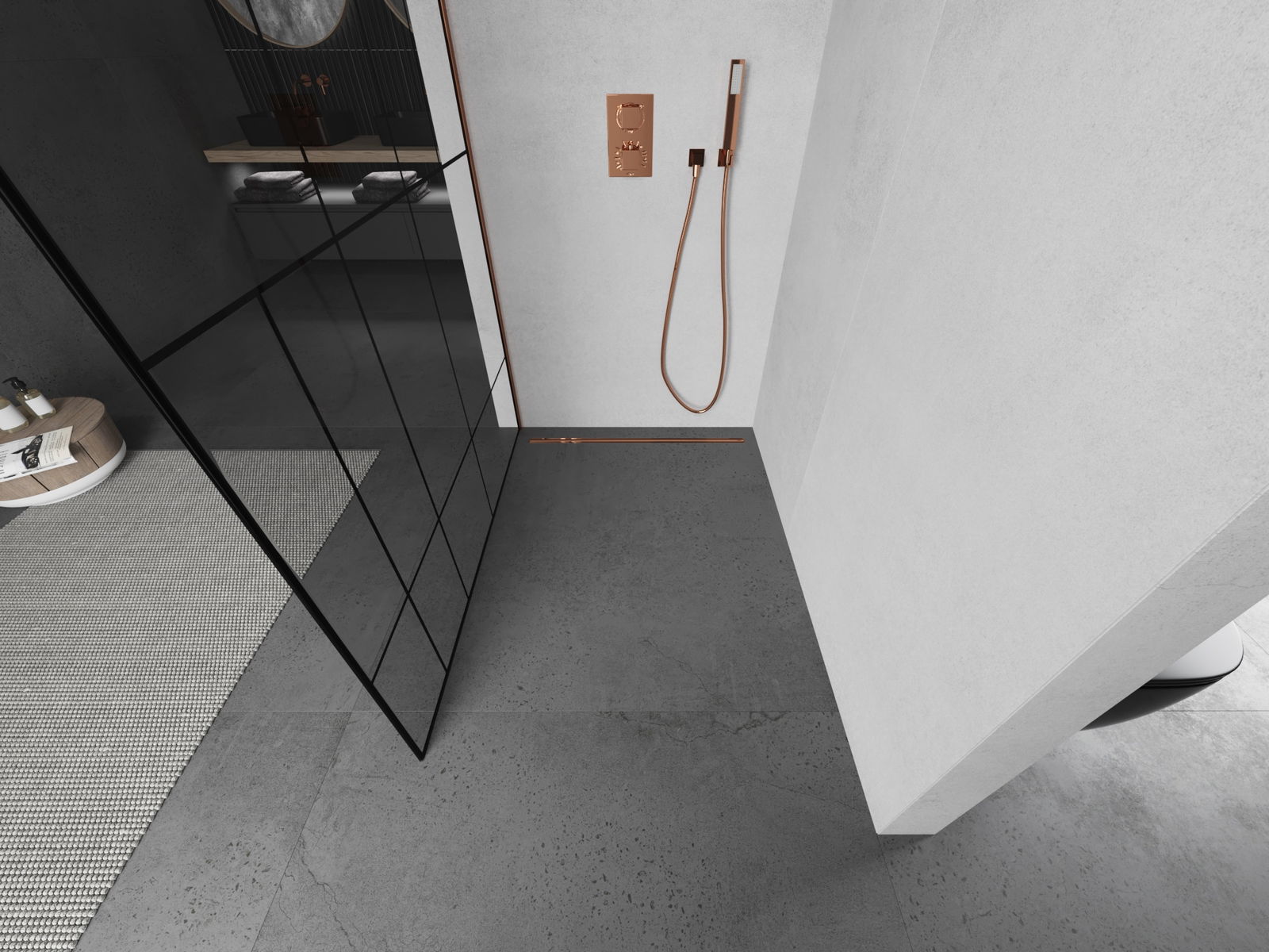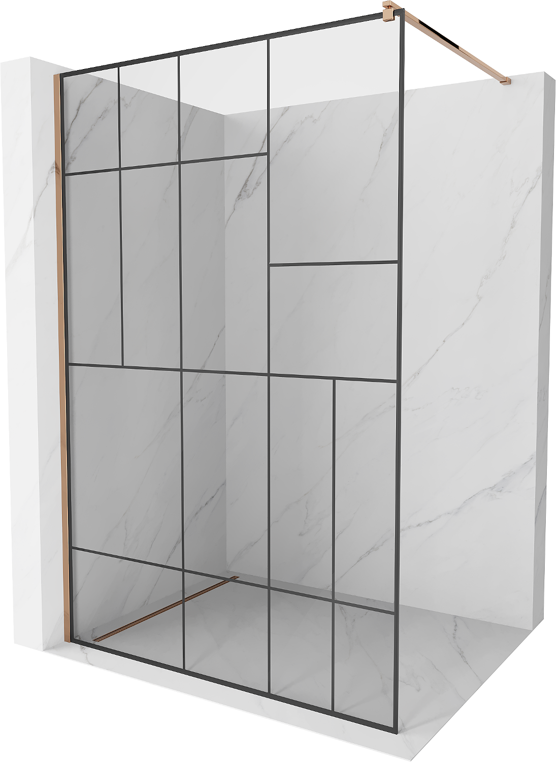 Mexen Kioto shower wall Walk-in 70 x 200 cm, black pattern 8 mm, rose gold - 800-070-101-60-78