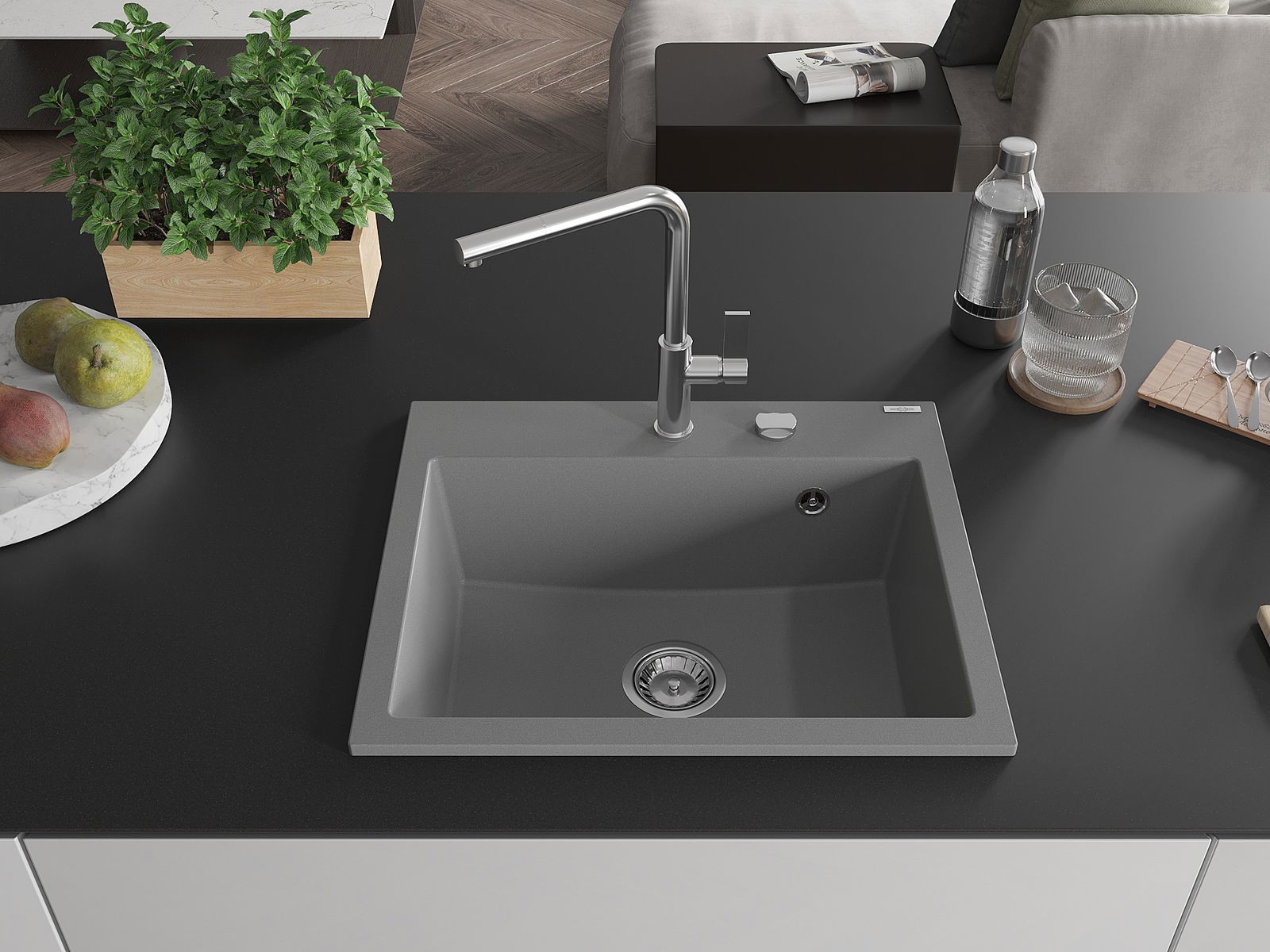 The sink is made of high quality granite. It is an elegant and, above all, practical complement to every kitchen, regardless of its style. High quality and granite durability ensure many years of use.