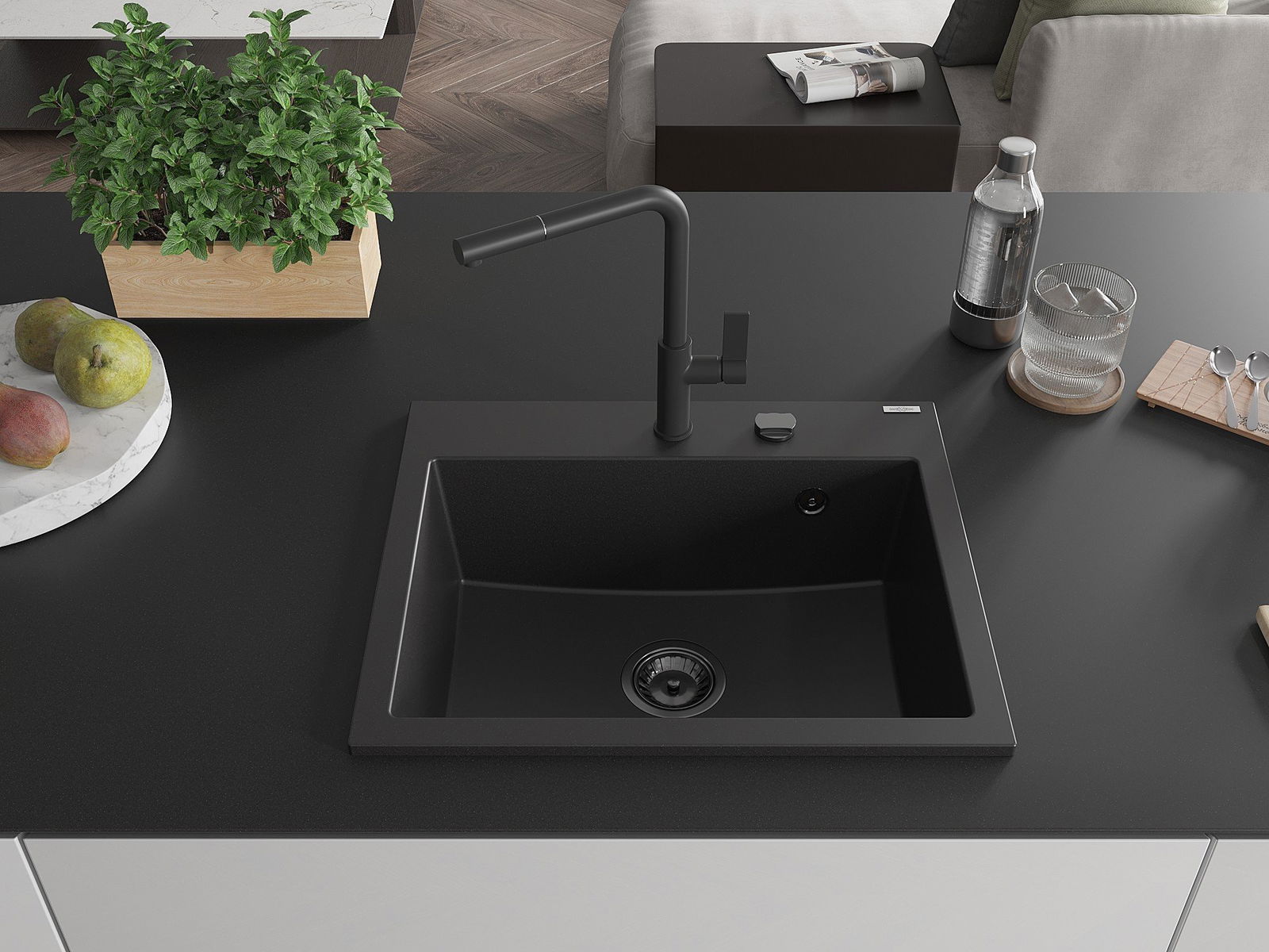 The sink is made of high quality granite. It is an elegant and, above all, practical complement to every kitchen, regardless of its style. High quality and granite durability ensure many years of use.