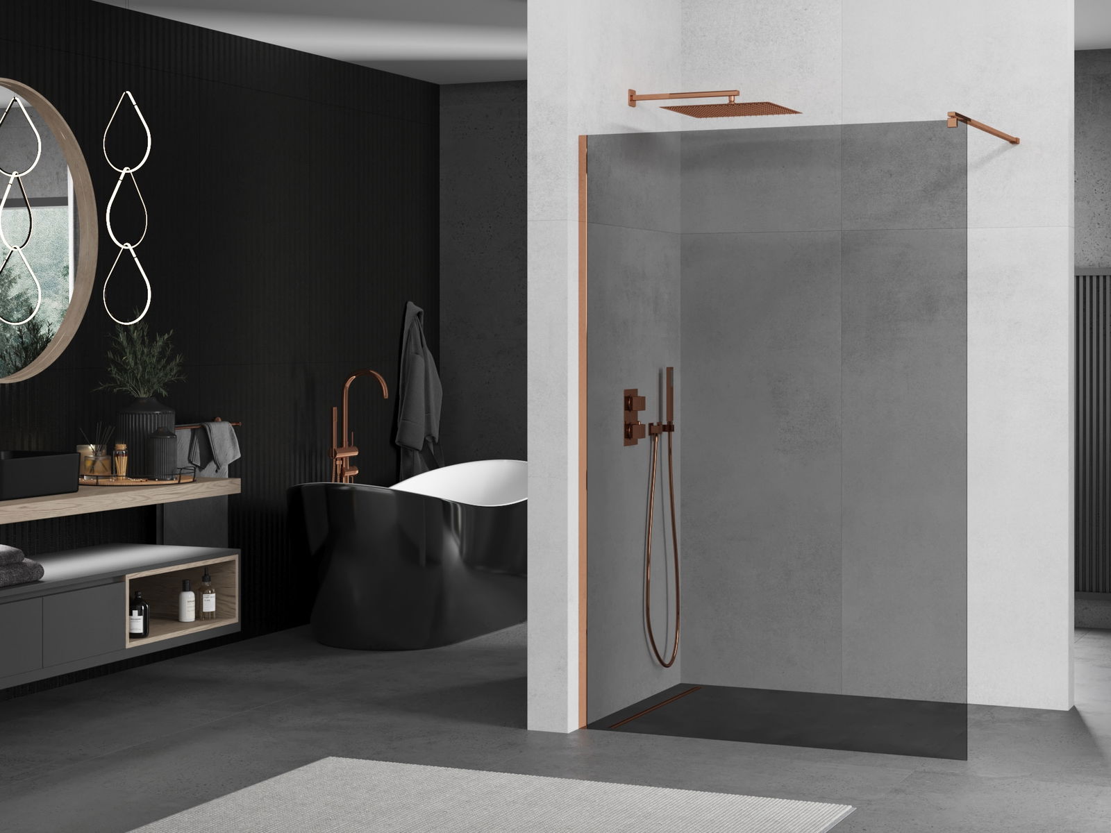 Mexen Kioto walk-in shower wall 140 x 200 cm, graphite 8 mm, rose gold - 800-140-101-60-40