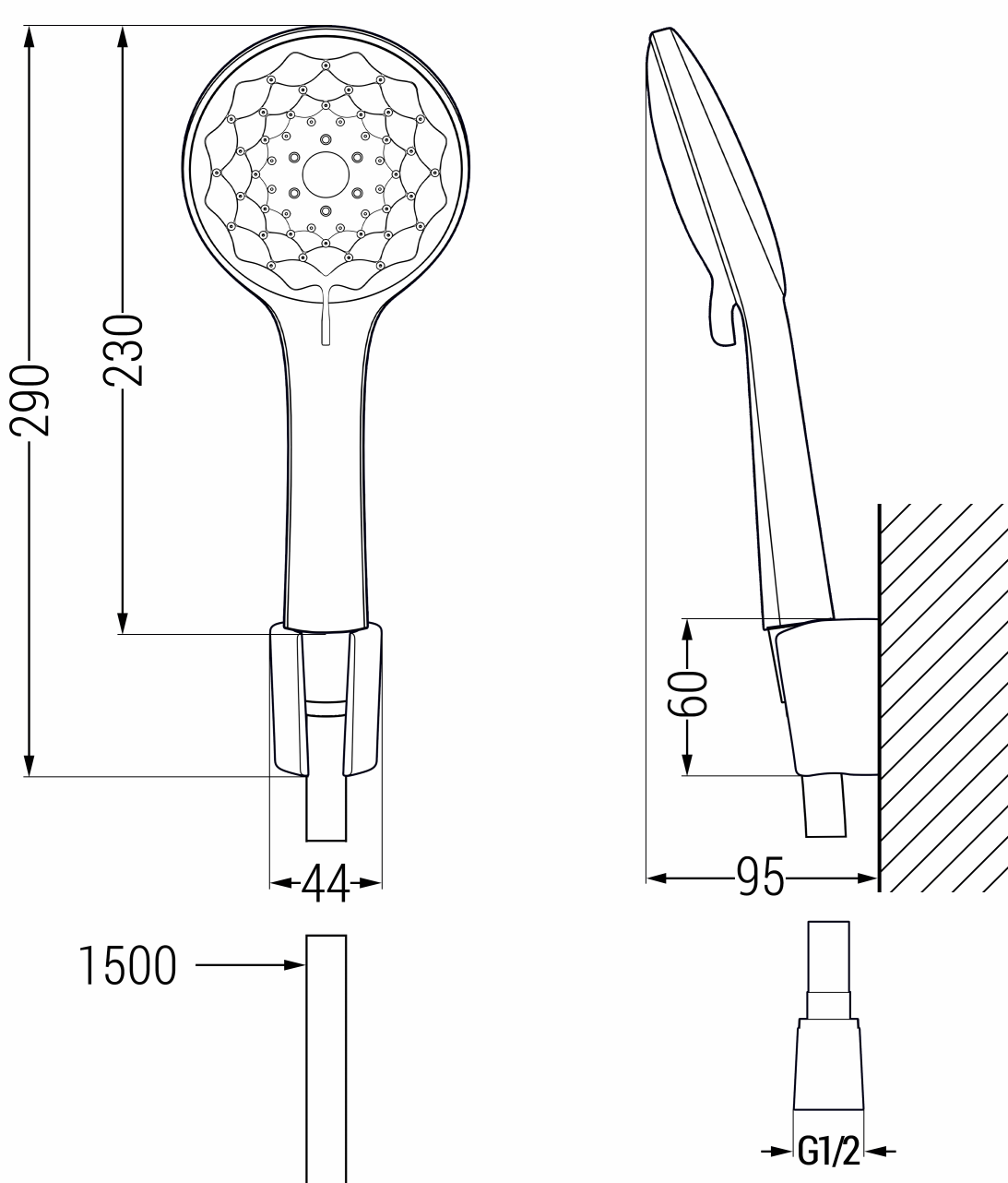 The shower handle has three types of a stream, changed with a switch. It gives full freedom and the ability to adapt to the needs of the user, offering a delicate or stronger and more concentrated stream of water.
