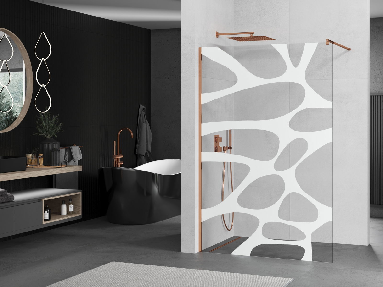 Mexen Kioto Walk-in Shower Wall 120 x 200 cm, White Wave 8 mm, Rose Gold - 800-120-101-60-97