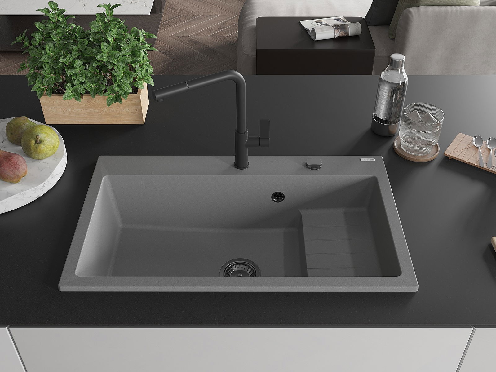 The sink is made from high-quality granite. It serves as an elegant and, above all, practical addition to any kitchen, regardless of its style. The high quality and durability of granite ensure many years of use.