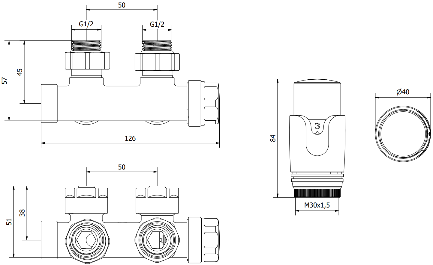 The set includes additional connectors for multilayer pipes 16x2 mm and connectors for copper pipes 15 mm