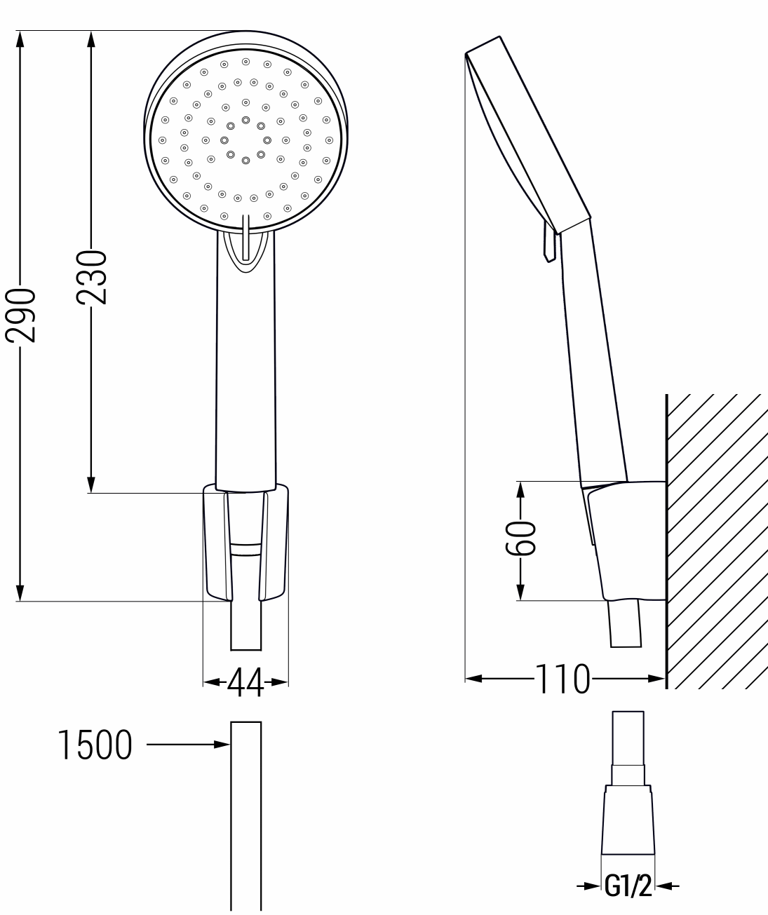 The shower head has one type of stream – rain. This function mimics natural rain, flowing evenly over the body. It provides a gentle and relaxing sensation during a shower, making it a true moment of relaxation.