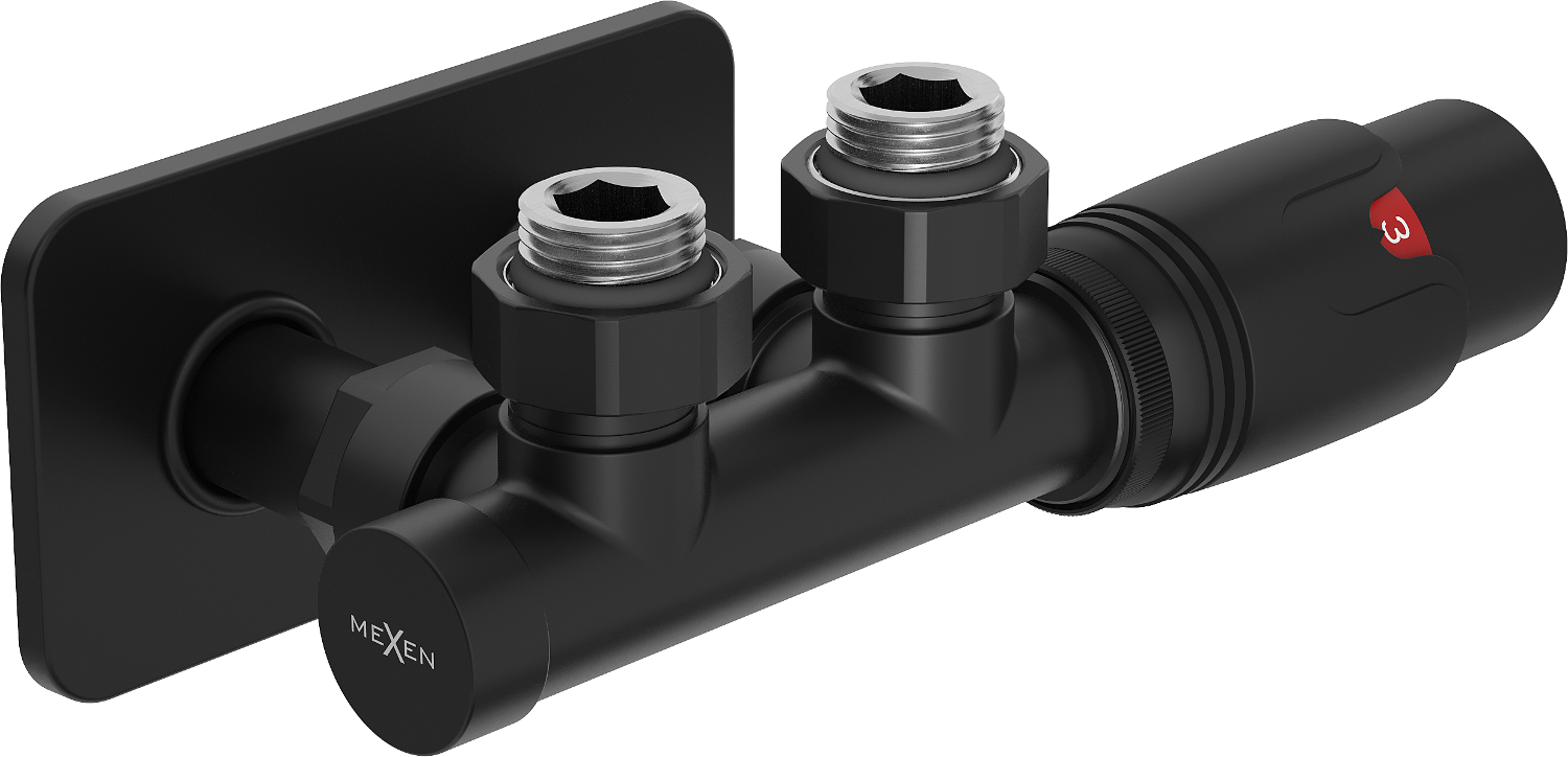 The Mexen G00 angular thermostatic set with S cover, Duplex, DN50, black offers exceptional quality thanks to its solid brass construction. Its elegant anthracite colour suits modern interiors. The valve has a connection diameter of G 1/2" and a maximum operating temperature of 120°C and pressure of up to 10 bar. The bottom connection and a temperature adjustment range from 0 to 29°C provide versatility. Frost protection and the possibility to connect the head from both sides increase functionality.