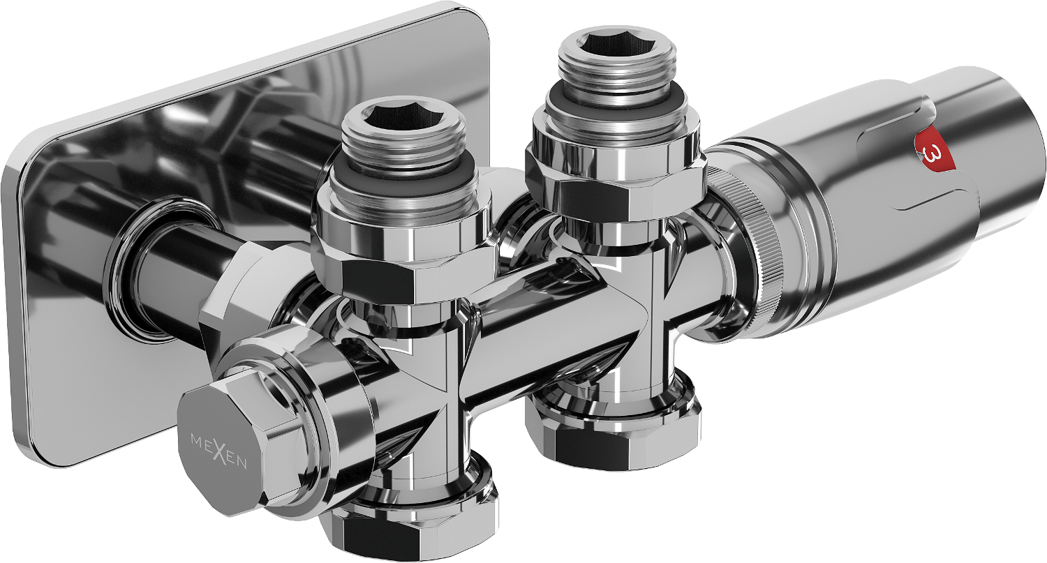 Set with a stainless steel rosette and brass sleeve combines two materials with exceptional properties. Stainless steel provides an aesthetic finish and resistance to corrosion, while brass guarantees durability and strength when connecting the elements of the heating system.