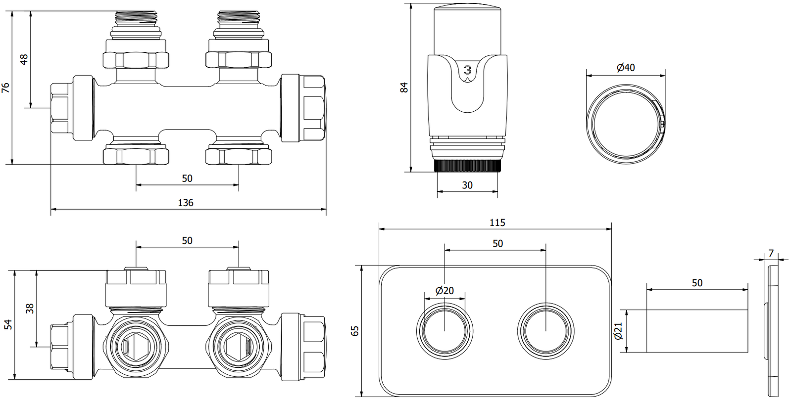 Spacing of radiator connection holes: 50 mm