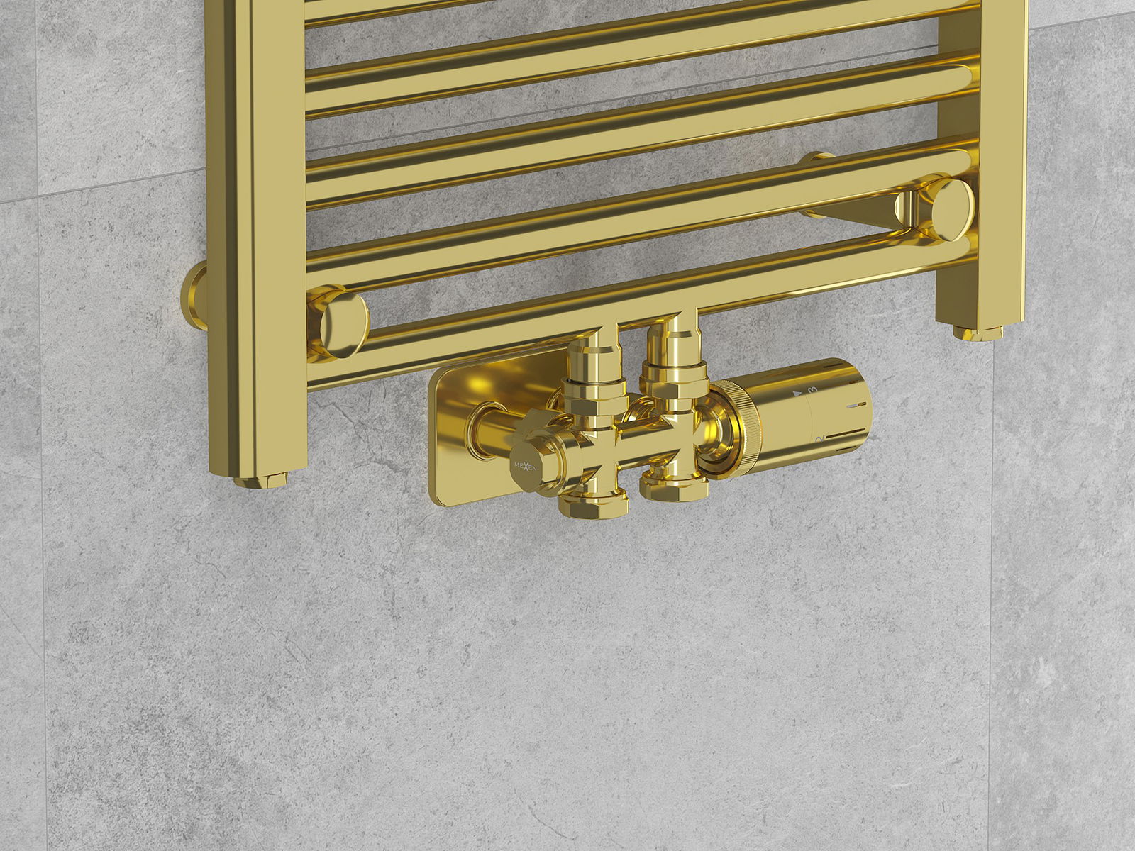 Set with a stainless steel rosette and brass sleeve combines two materials with exceptional properties. Stainless steel provides an aesthetic finish and resistance to corrosion, while brass guarantees durability and strength when connecting the elements of the heating system.