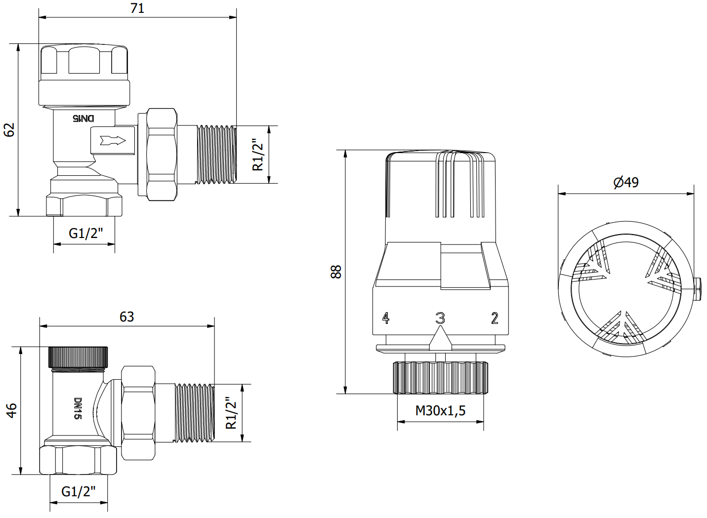 The head with a 5-stage temperature regulation scale, ranging from 0-29 °C, allows for precise temperature control. This function enables the user to set the room temperature, which translates to thermal comfort and energy savings.