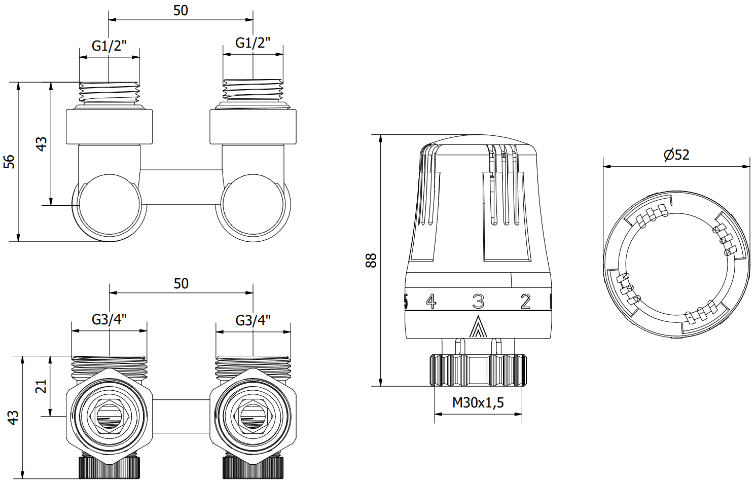 The head with a 5-stage temperature regulation scale, ranging from 0-29 °C, allows for precise temperature control. This function enables the user to set the room temperature, which translates to thermal comfort and energy savings.