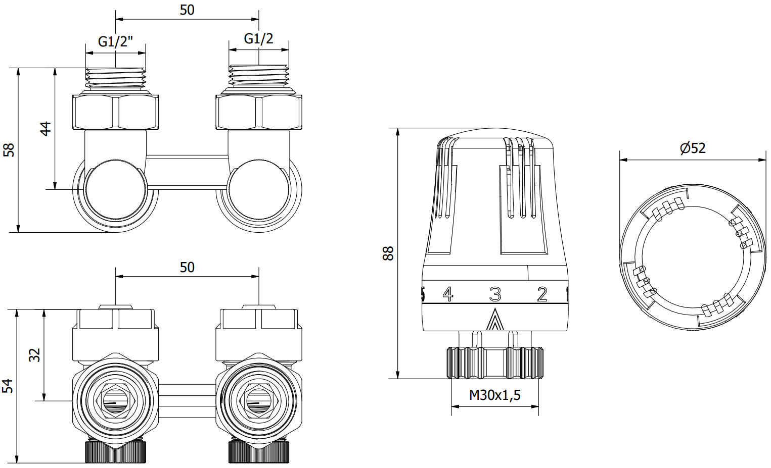 Connection diameter: G 1/2" and pex 16x2 mm