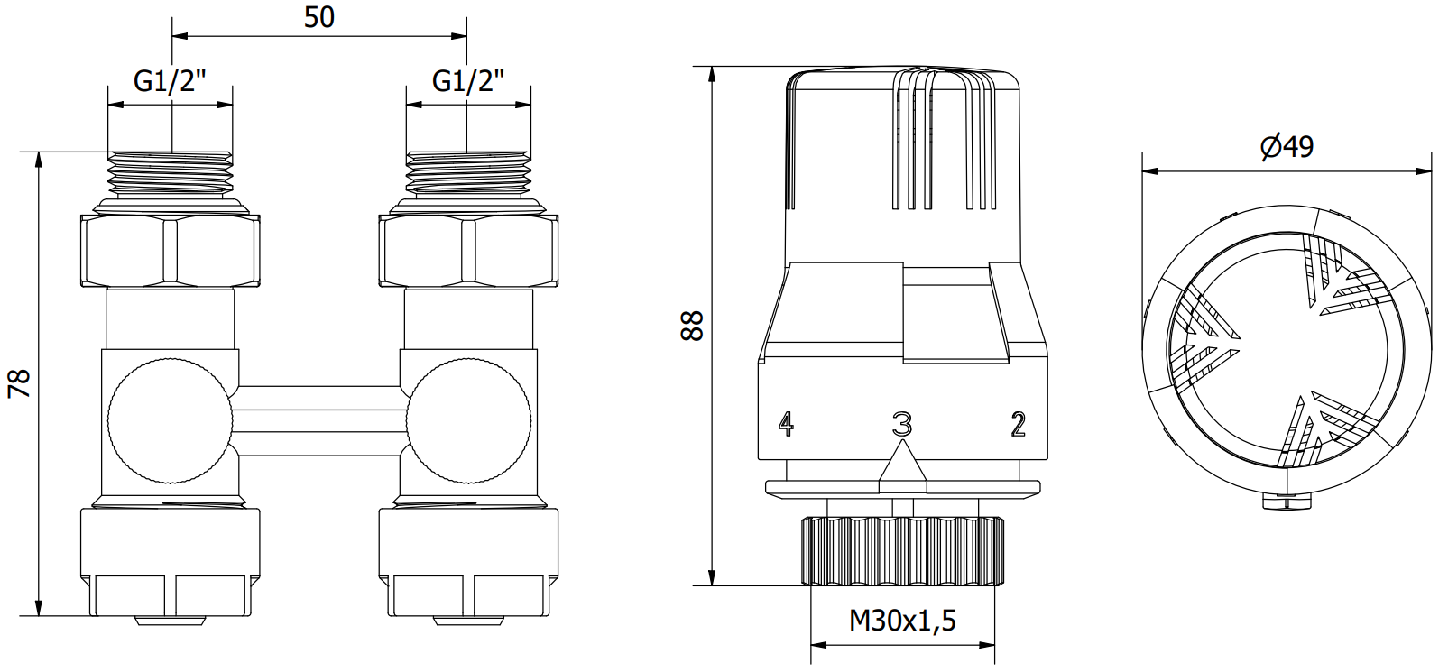 Connection diameter: G 1/2" and pex 16x2 mm