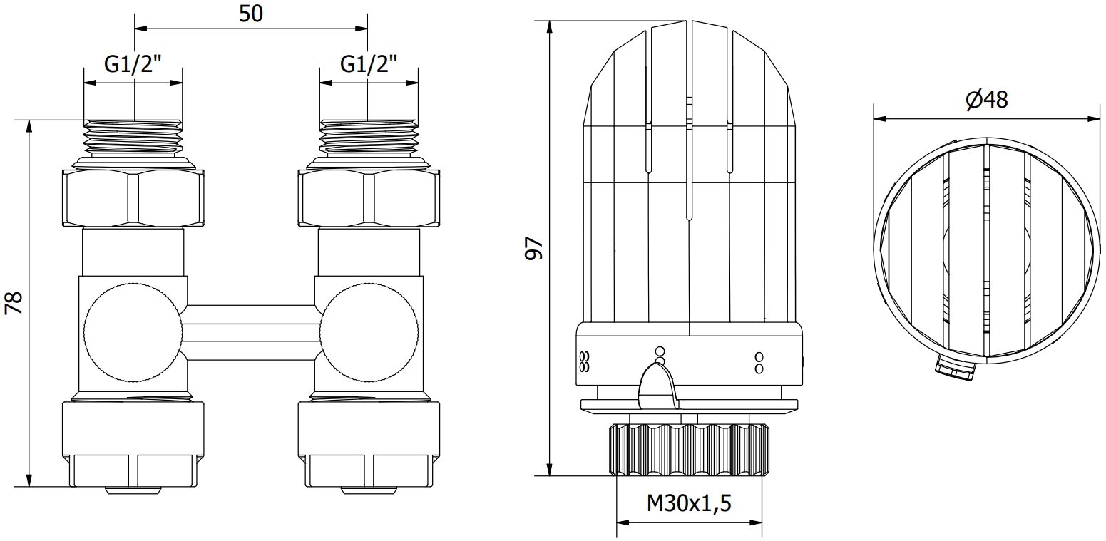 Connection diameter: G 1/2" and pex 16x2 mm
