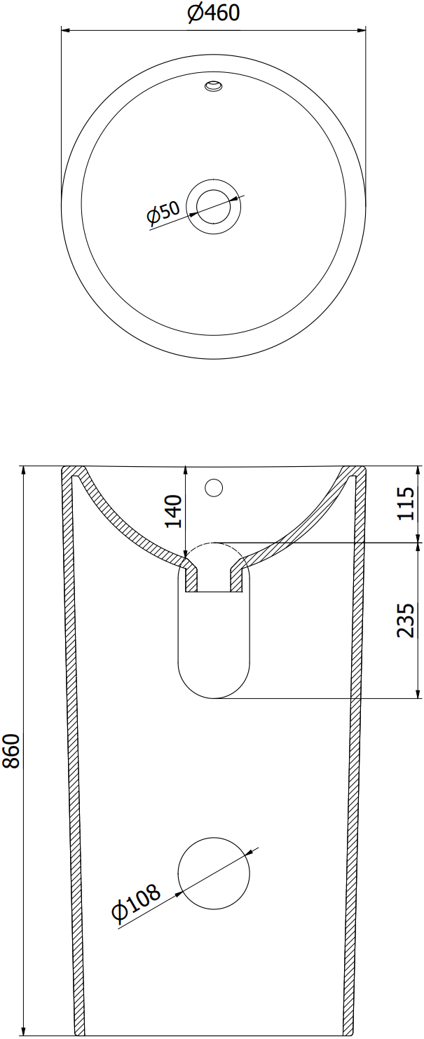Overflow hole: Yes