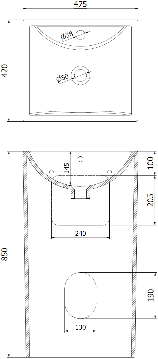 Overflow hole: Yes