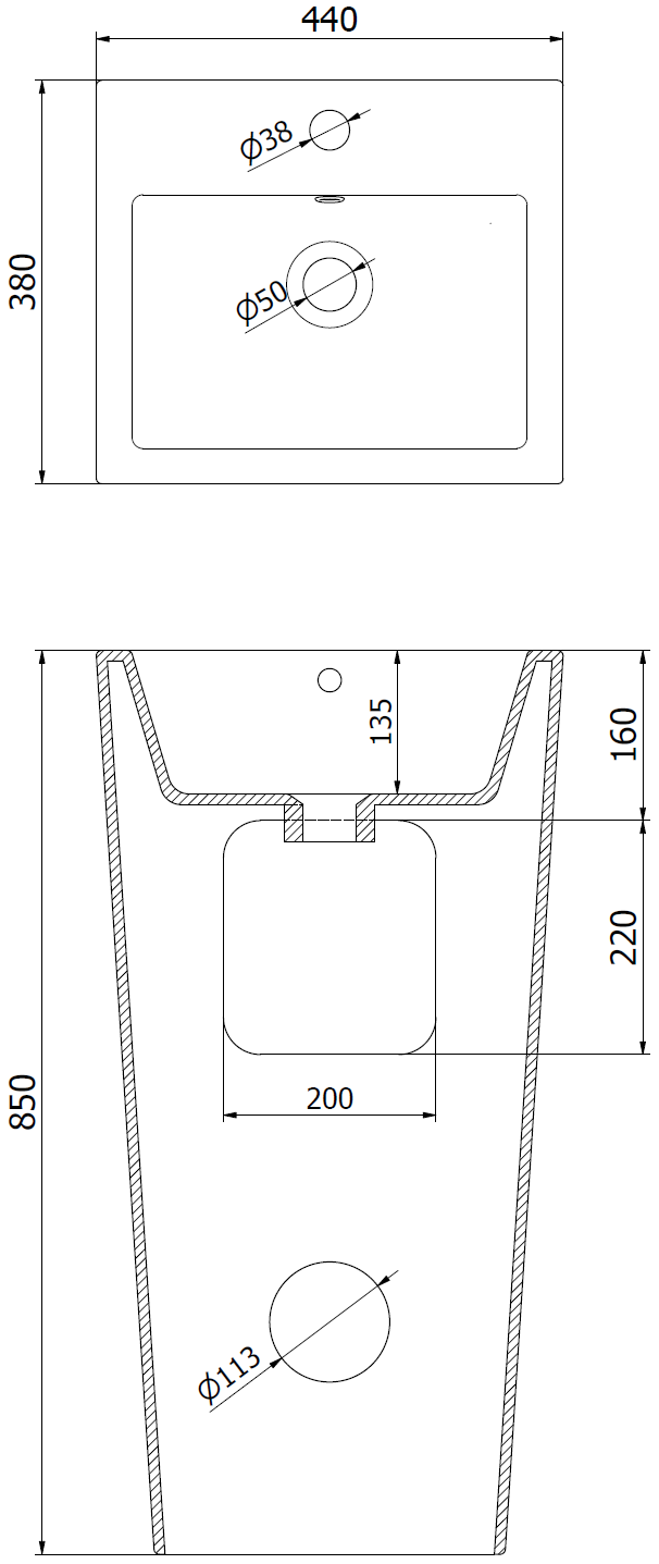 The washbasin has an opening where we can install a tap. This allows for saving valuable space in the bathroom and enhances its aesthetics. This solution also makes it easier to maintain cleanliness around the washbasin.