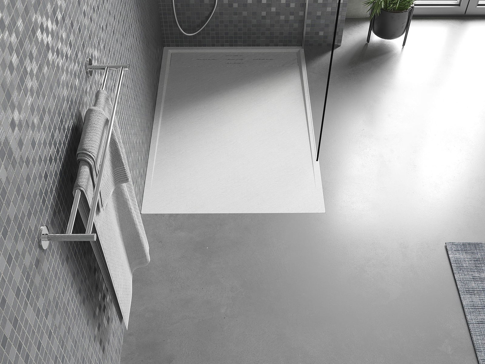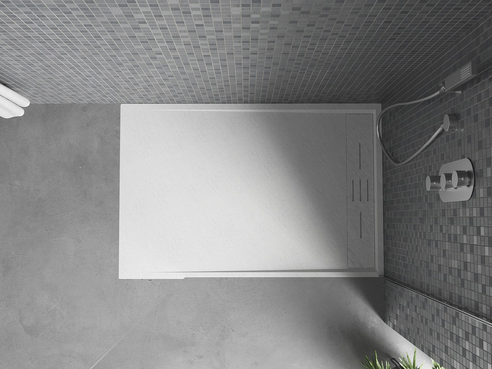 The surface of the shower tray resembles stone in its structure. It is a unique combination of a natural appearance with modern interior design. It adds character, enhances the aesthetics and elegance of the bathroom decor, and delights with its form.
