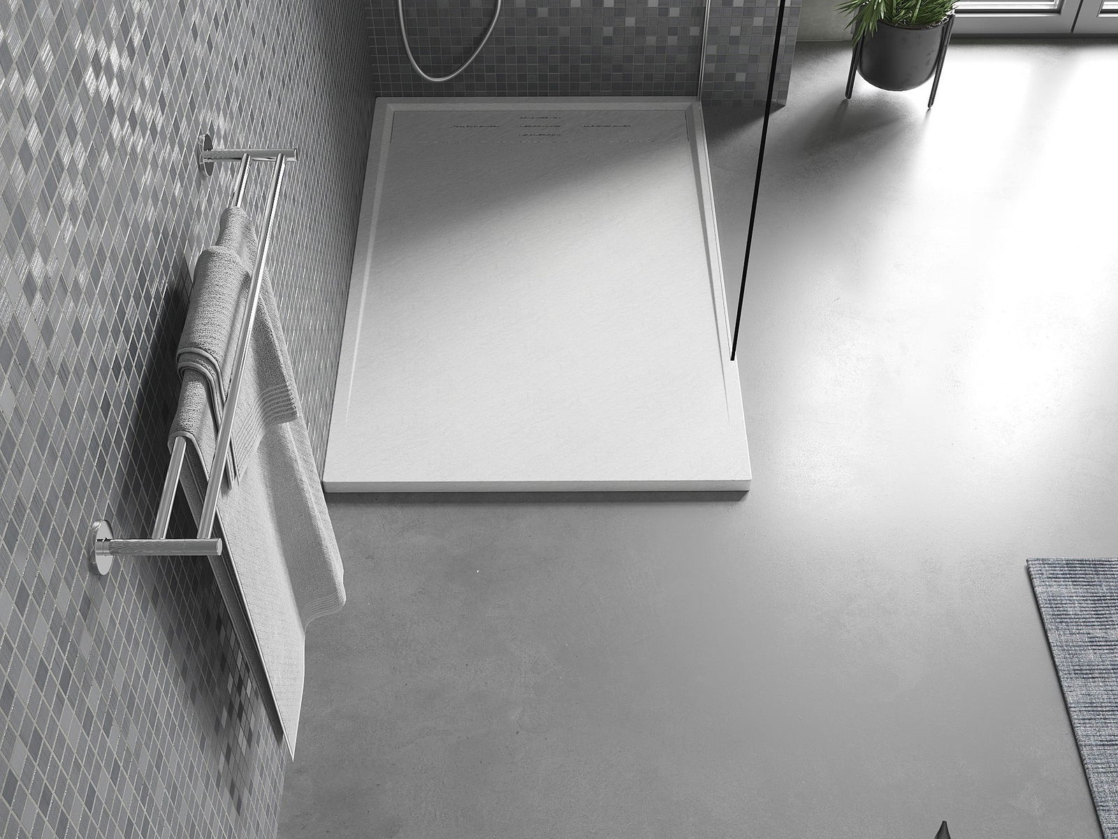 The shower tray has a low threshold, which makes it easier to enter and exit the shower. It adds a unique and timeless finish to the room, making the bathroom a comfortable and aesthetically pleasing place for daily relaxation.