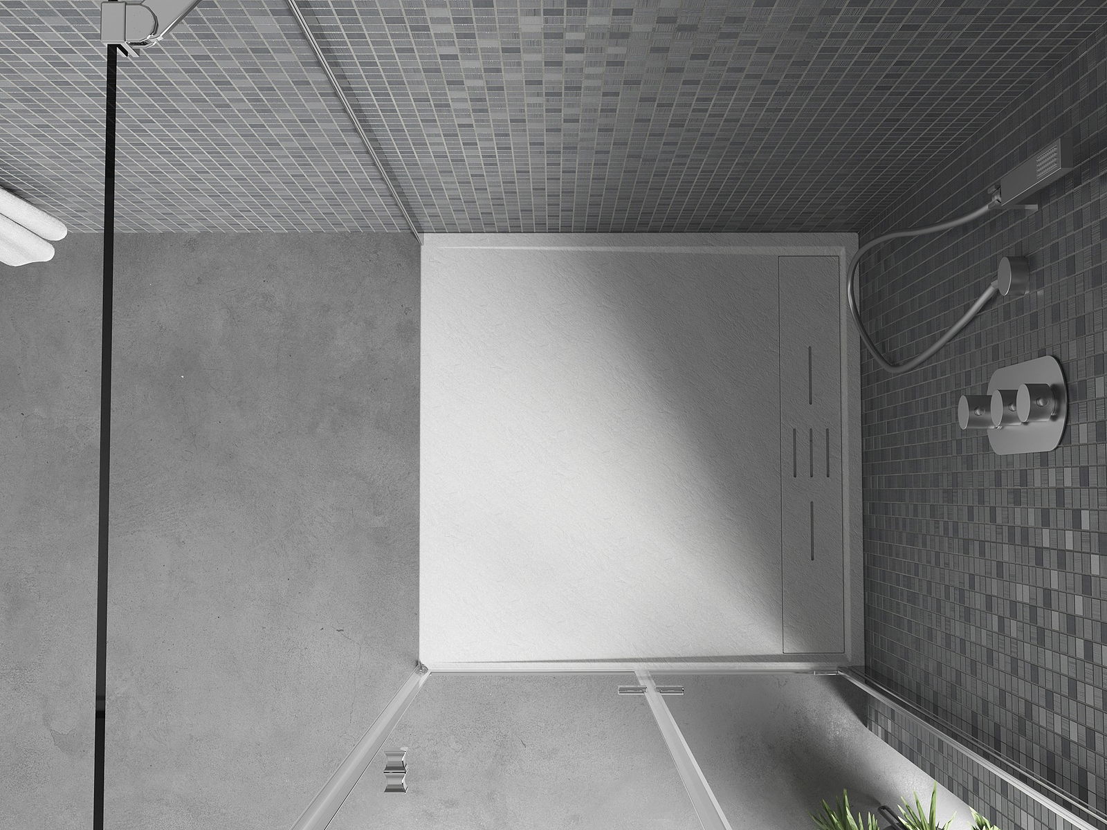 The surface of the shower tray resembles stone in its structure. It is a unique combination of a natural appearance with modern interior design. It adds character, enhances the aesthetics and elegance of the bathroom decor, and delights with its form.
