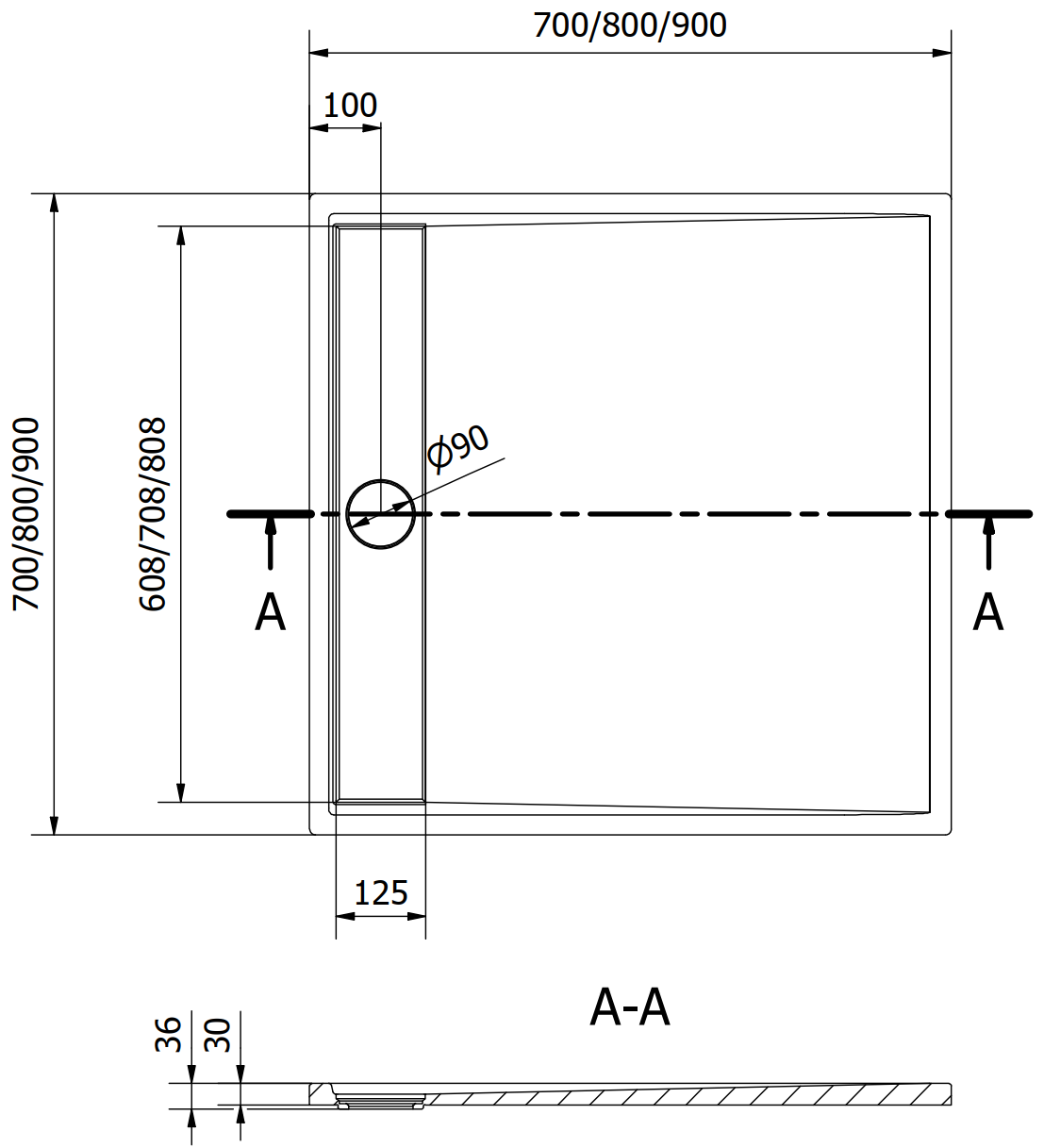 The shower tray is designed in such a way that water can freely flow towards the drain. It ensures quick and effective drainage of water from the surface of the shower tray, preventing the formation of puddles and flooding the bathroom.