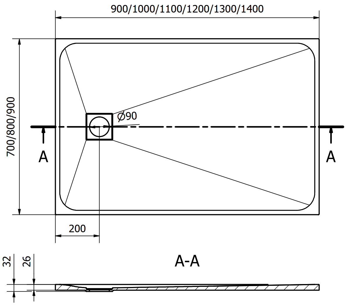 The shower tray is designed in such a way that water can freely flow towards the drain. It ensures quick and effective drainage of water from the surface of the shower tray, preventing the formation of puddles and flooding the bathroom.
