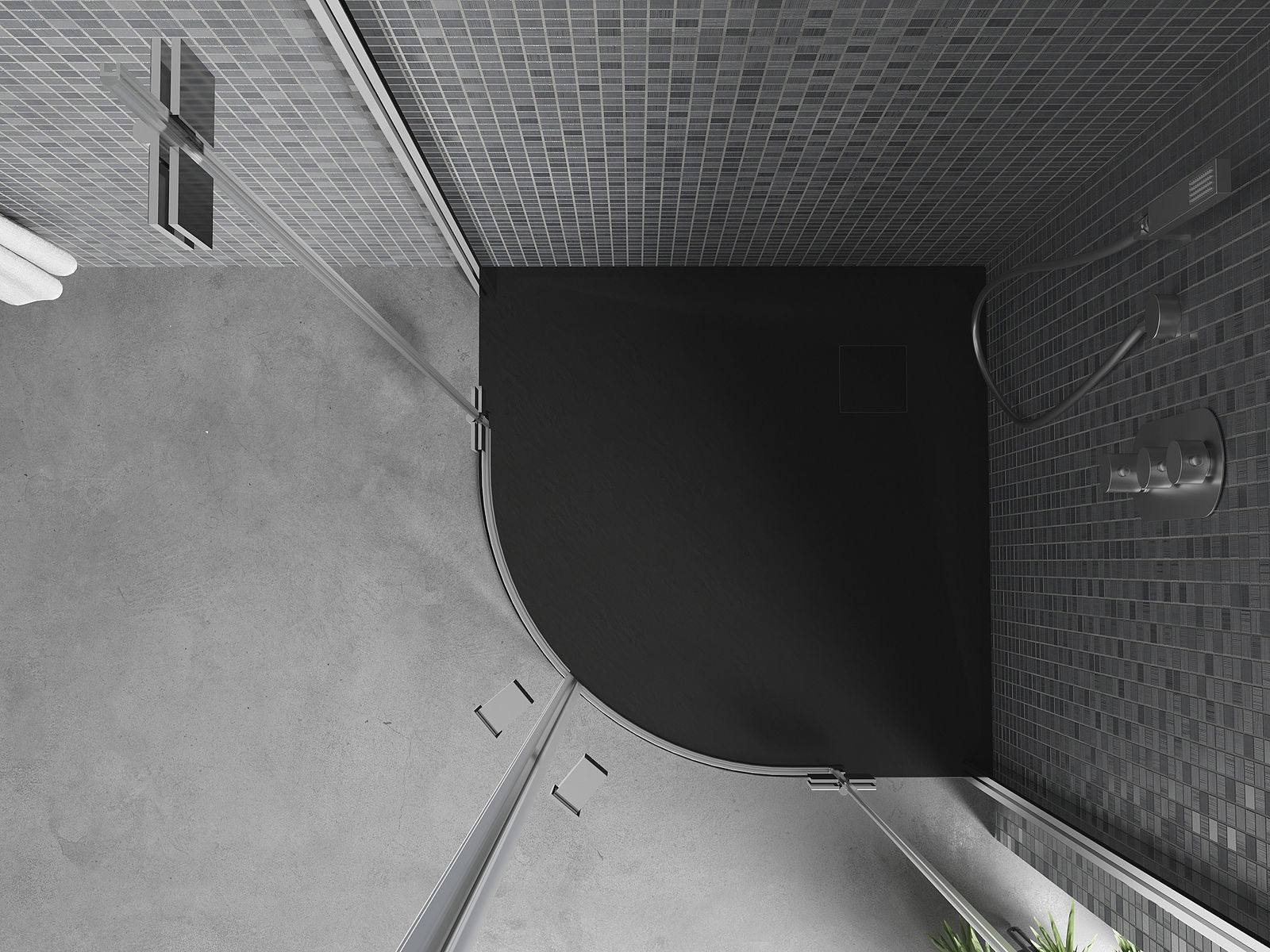 The Mexen Bert semicircular shower tray 90 x 90 cm is an ideal solution for modern bathrooms. Made from durable and flexible SMC material, it ensures maximum stability and resistance to damage. Its ultrathin construction at just 2.6 cm high makes it exceptionally aesthetic and easy to install. Thanks to the possibility of trimming and attractive black finish, it fits perfectly into any interior. The set includes a top-cleaned siphon and a 90 mm diameter drain.