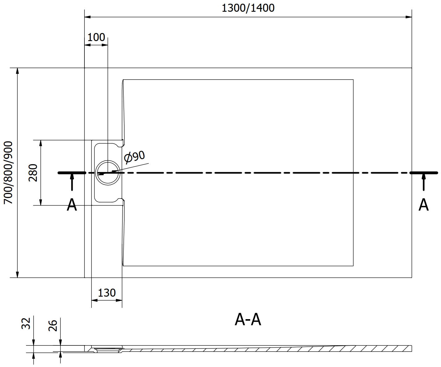 The shower tray is designed in such a way that water can freely flow towards the drain. It ensures quick and effective drainage of water from the surface of the shower tray, preventing the formation of puddles and flooding the bathroom.
