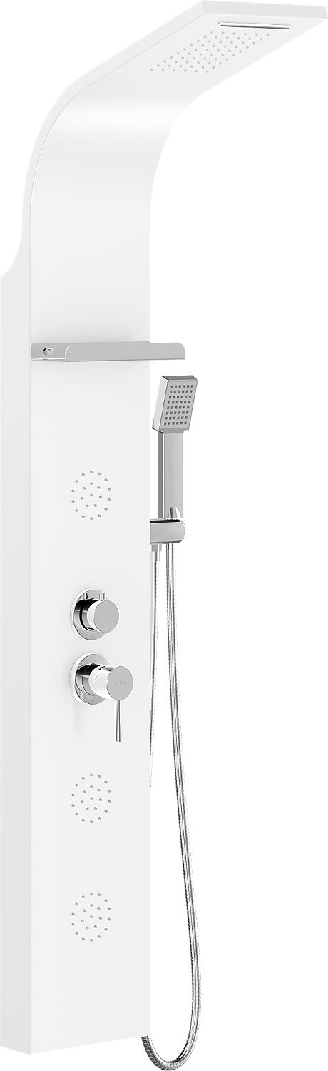 The shower faucet with a cosmetic shelf is a functional solution that combines ease of use with aesthetics. The shelf allows for the storage of cosmetics, soaps, shampoos, and other accessories at hand during a bath.