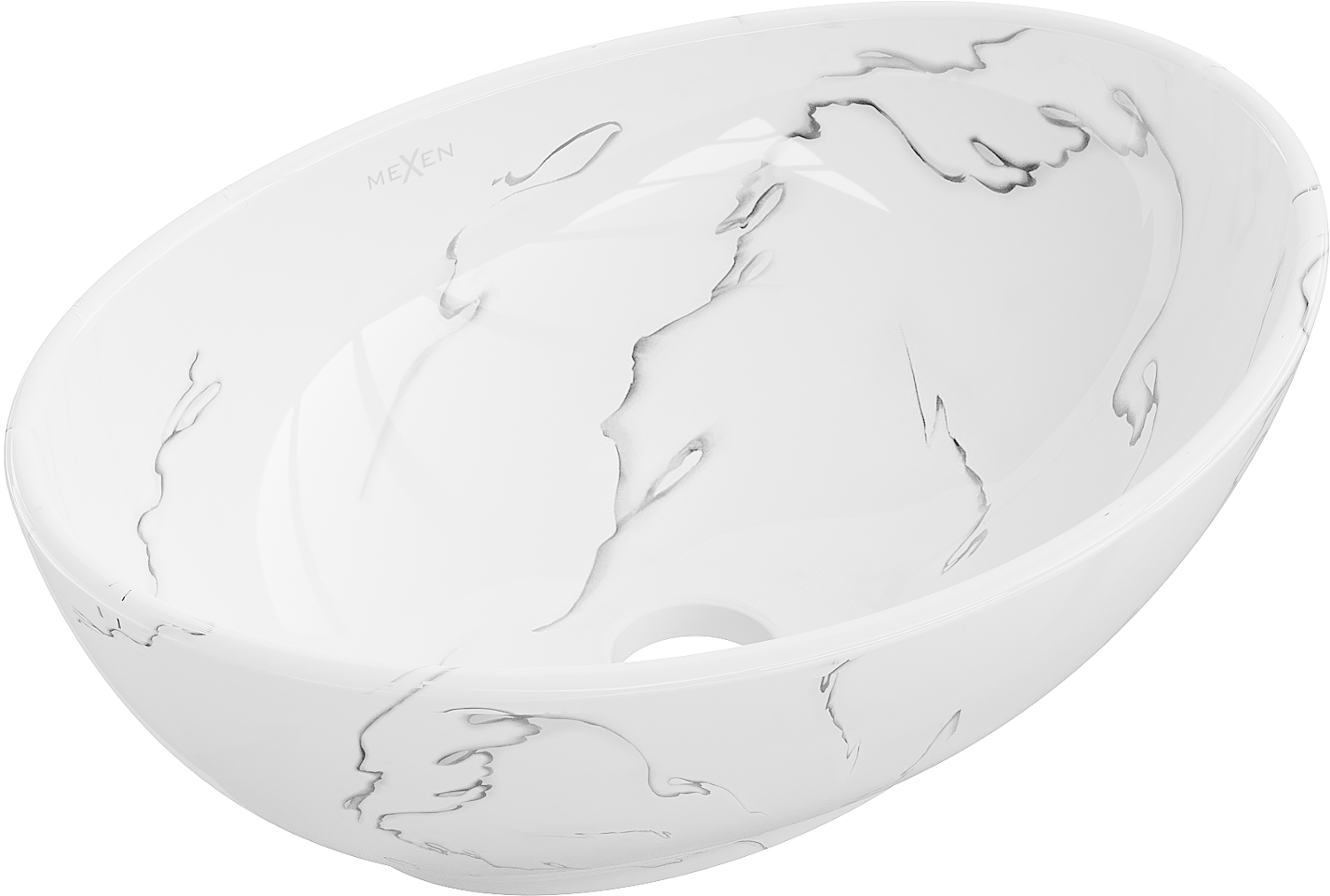 The Mexen Elza countertop sink, measuring 40.5 x 33 x 14 cm, is an ideal solution for a modern bathroom. Made from high-quality sanitary ceramic in an elegant white color, it ensures durability and ease of cleaning. Its oval shape and high-gloss surface add style, while the absence of faucet and overflow holes allows for flexible integration into various designs. Thanks to its protective coating, the sink is not only aesthetically pleasing but also scratch-resistant.