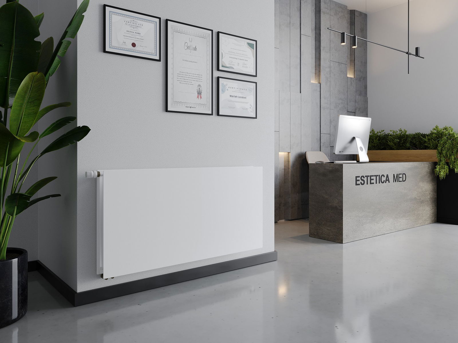 The product is designed with maintaining the highest standards of cleanliness and hygiene in mind. Due to the lack of side panels and a top grill cover, this type of radiator is particularly recommended for places where cleanliness is a priority, such as hospitals, doctor's offices, preschools, or other public facilities.