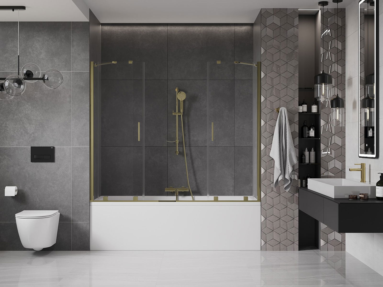 Mexen Velar Duo 2-wing Sliding Bath Screen 190 x 150 cm, Transparent, Gold - 896-190-000-02-50