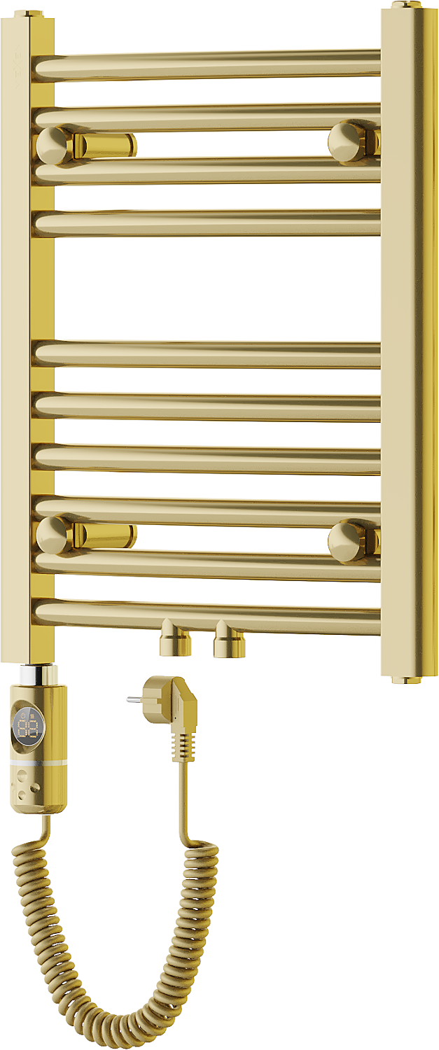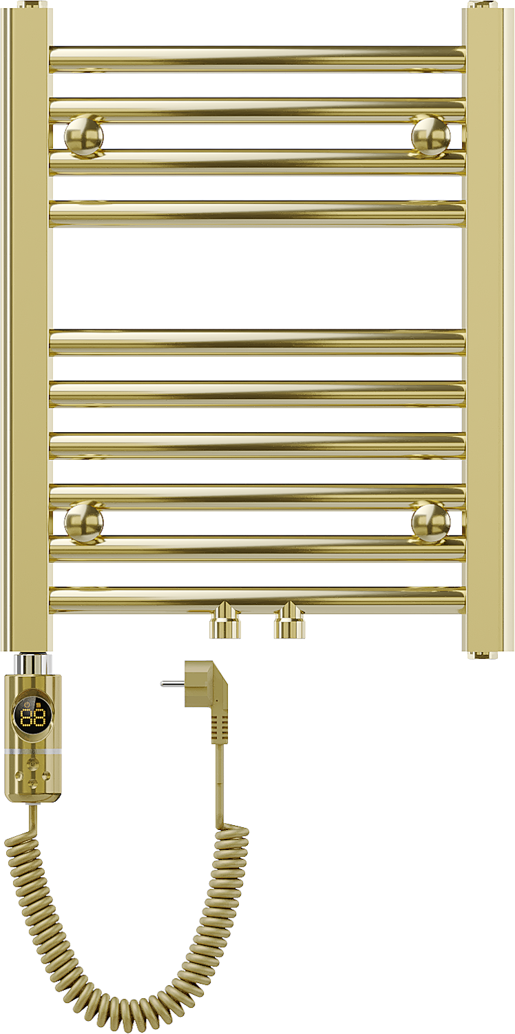Mexen Ares is an electric radiator with dimensions of 500 x 400 mm and a power of 300 W, available in an elegant gold color. Made of steel, it features a durable paint coating resistant to corrosion. The radiator has 10 heating rods and provides precise touch control thanks to the LED display. A built-in thermostat maintains the desired temperature, while features such as Sensitive, Comfort, and child lock enhance its usability. Protection against dry running and protection level IP44 ensure safety. The set includes mounts and an installation kit.