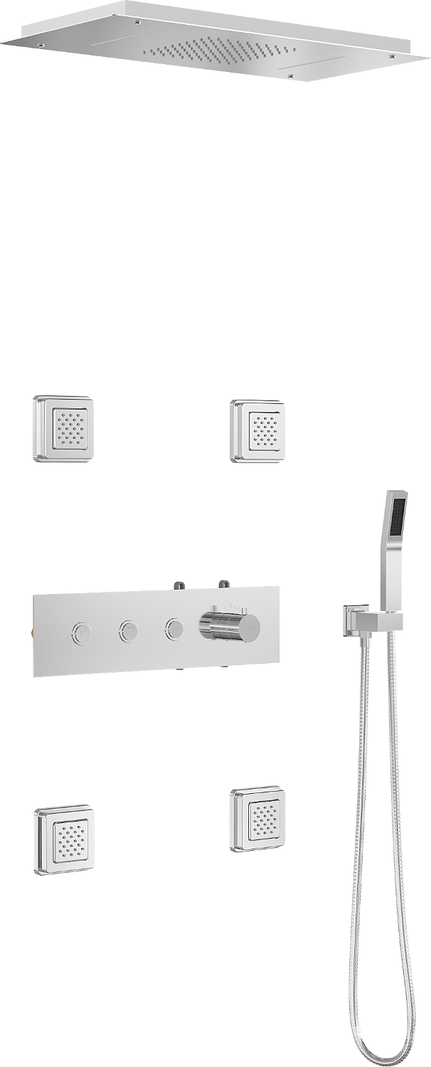 A standard water stream that mimics natural rain. The droplets flow evenly over the body, enveloping it with a pleasant sensation of moisturisation and allowing you to immerse yourself in a relaxing and soothing sensory experience during your daily bath.