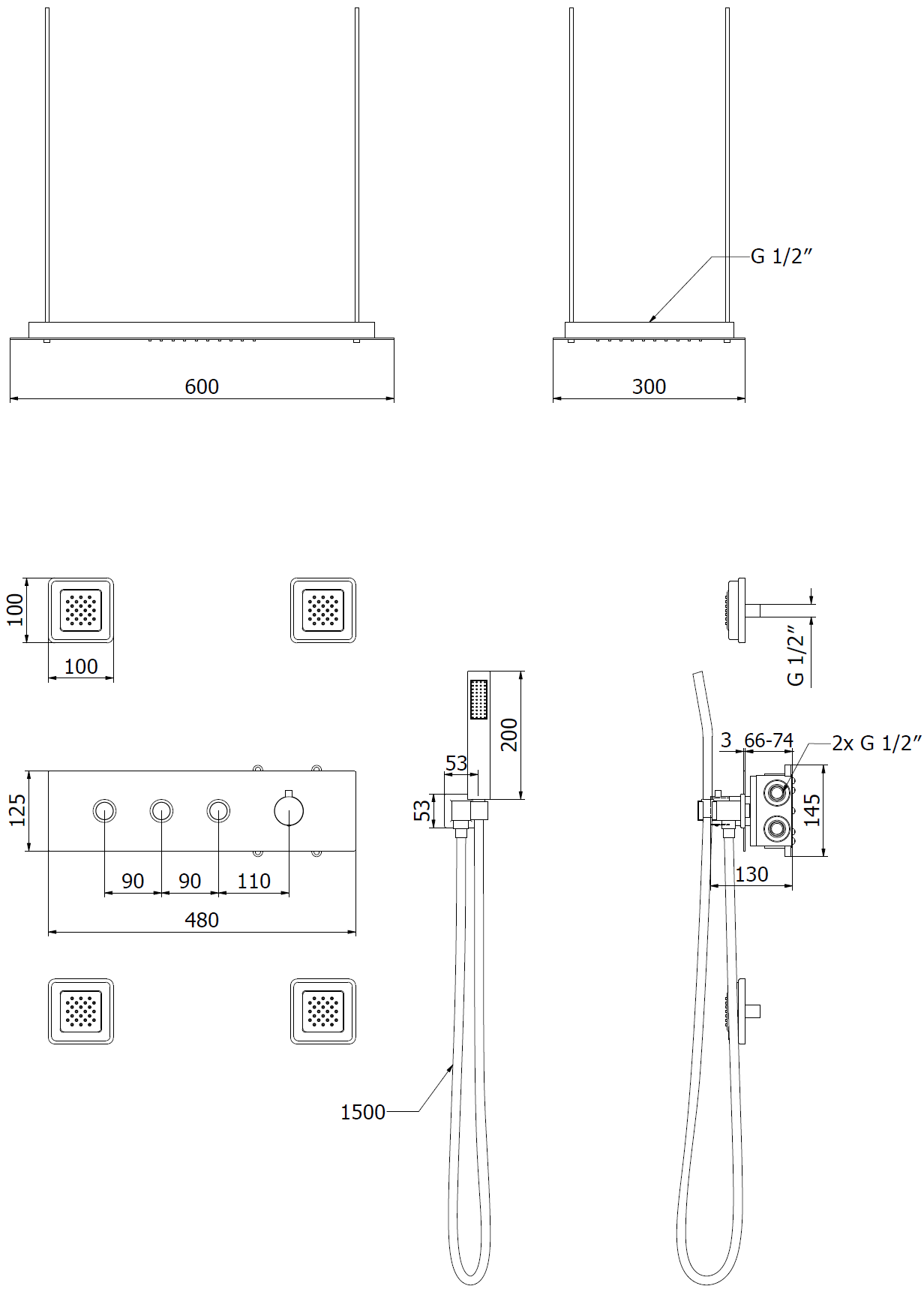 A 1/2" threaded connection is a commonly used standard element in internal water installations. This makes connecting and installing subsequent shower elements much easier and more intuitive.