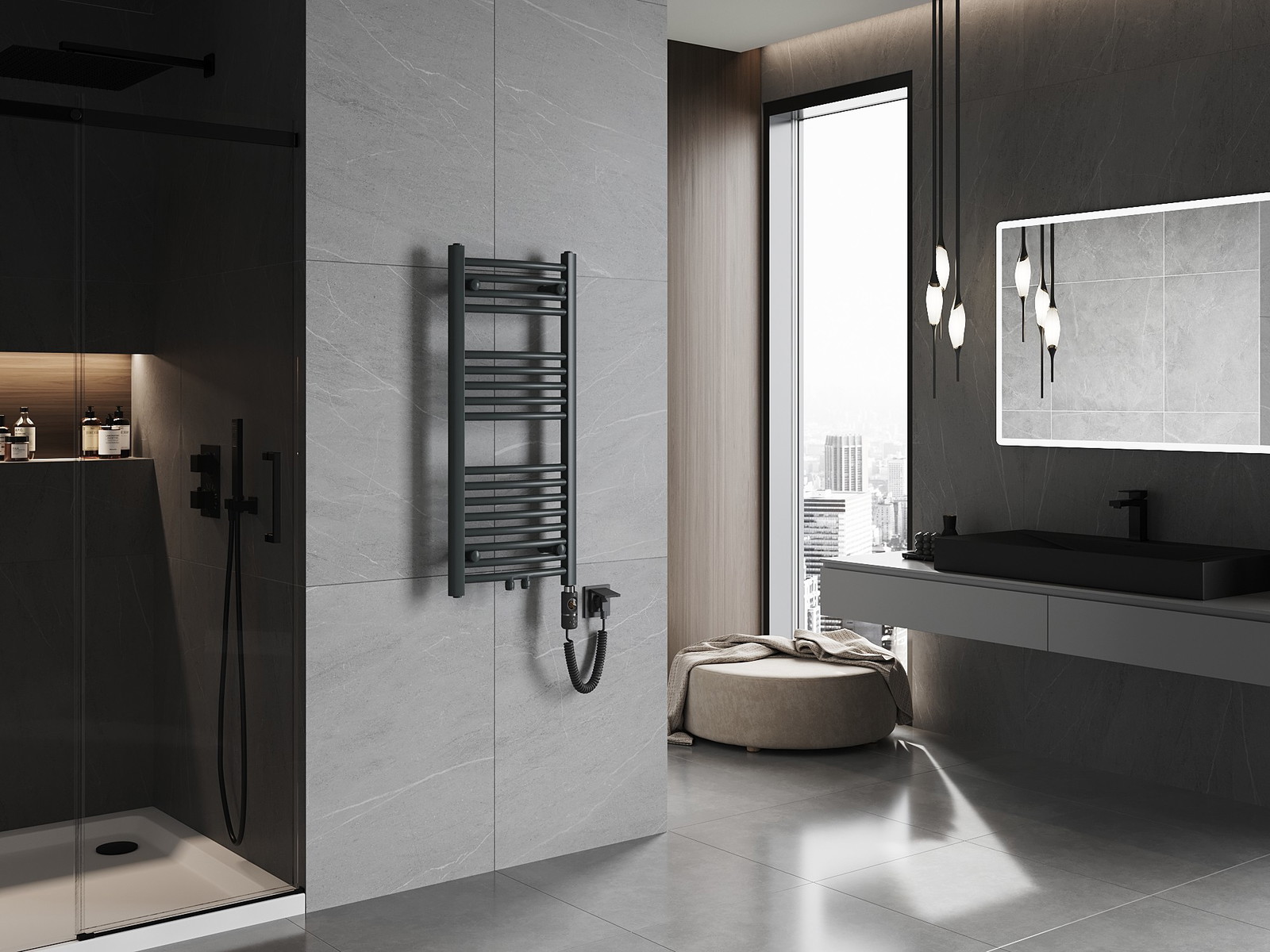 Mexen Ares is a modern electric heater with dimensions of 900 x 400 mm, offering a power of 300 W. Made of durable steel in an elegant anthracite color, it fits perfectly into modern interiors. It has 17 heating rods and a total heater length of 426 mm. Powered by 230V/50 Hz voltage, it is characterized by an IP44 protection degree. Thanks to the touch control and LED display, usage is intuitive. The heater has a built-in thermostat, "Sensitive" and "Comfort" functions, and protection against "dry operation." Ideal for maintaining warmth and comfort at home.