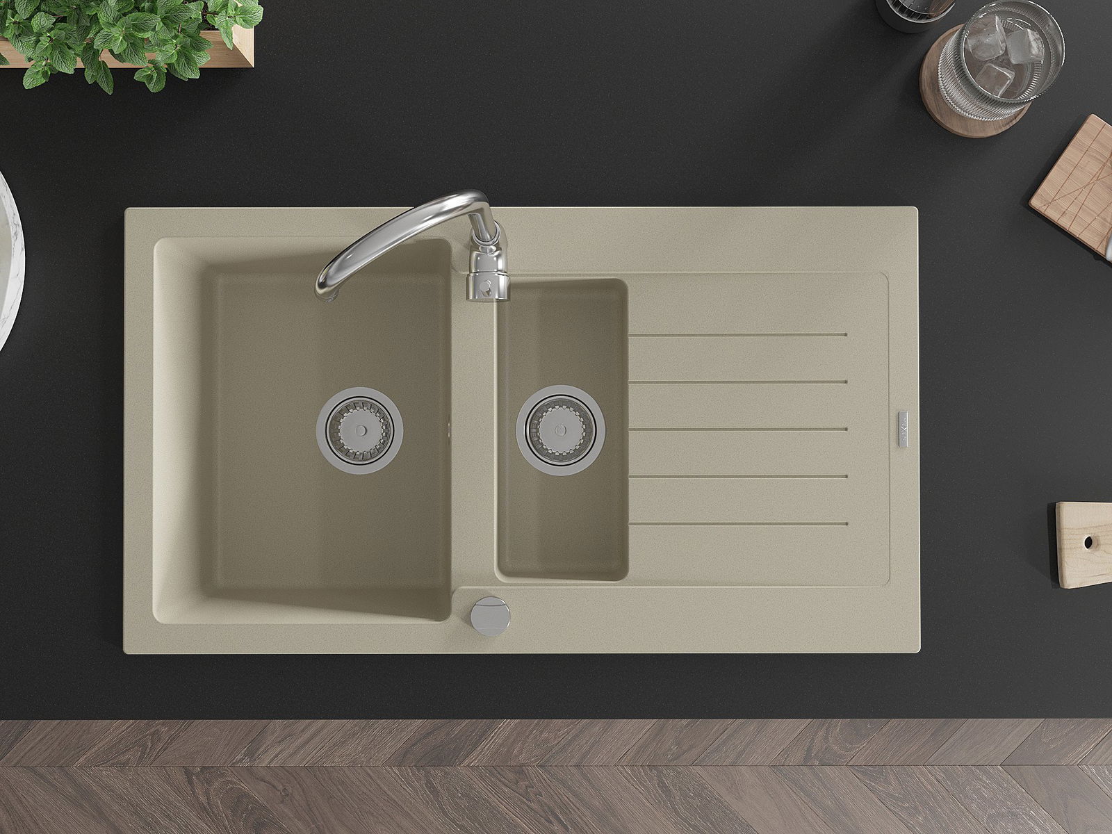 The sink is made of high quality granite. It is an elegant and, above all, practical complement to every kitchen, regardless of its style. High quality and granite durability ensure many years of use.