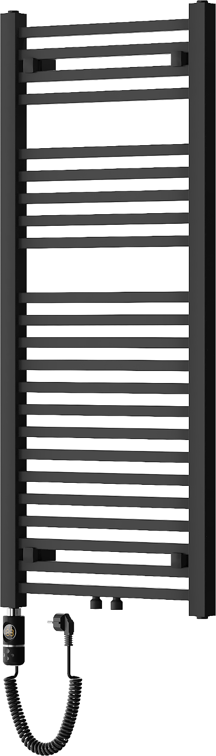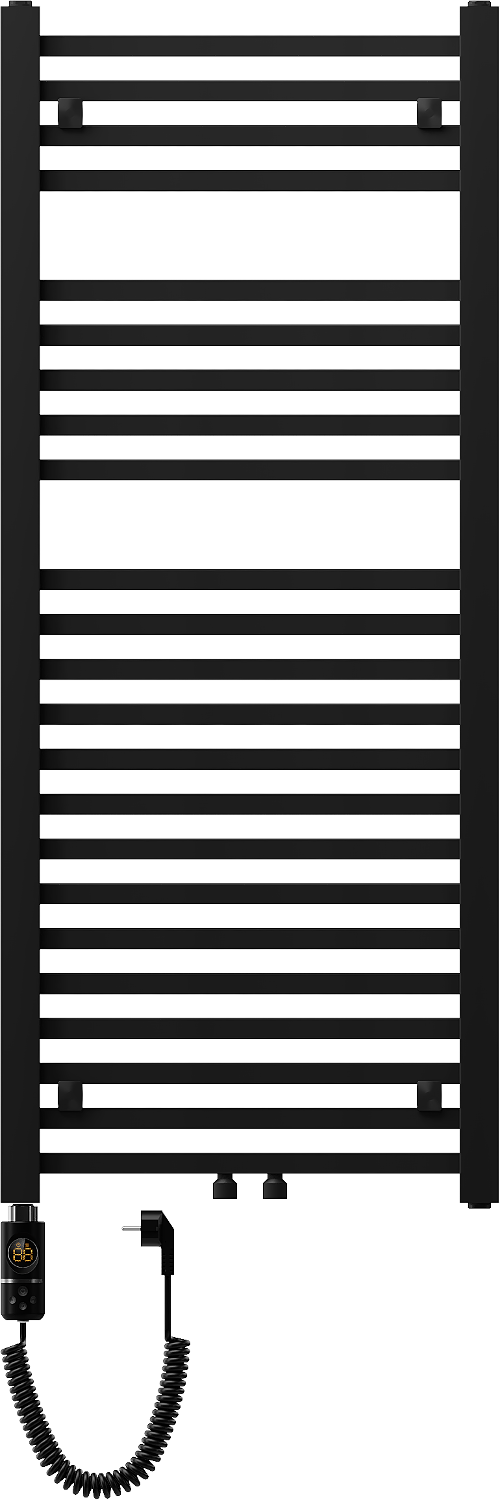 Mexen Pluton is a modern electric heater with dimensions of 1200 x 500 mm, ideal for elegant interiors. The black color and steel construction ensure durability and style. With a heating power of 600 W and 23 heating rods, it efficiently heats the space. The heater is equipped with features such as touch control via LED display, additional protection against dry operation, and a built-in thermostat. The ability to set temperatures from 40°C to 65°C provides user comfort. Additionally, the Comfort function with a drying option, parental lock, and high-quality corrosion-resistant paint coating make this product a reliable choice for any home. Hangers, mounting kit, and sealing plugs included guarantee easy installation and use.