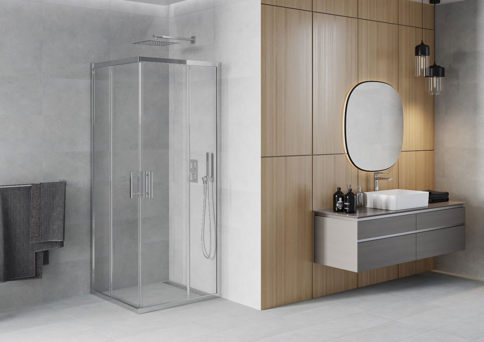 Sliding doors move along special guides and do not require additional space to open, which is why they are ideal for smaller bathrooms. Thanks to the double rollers made of durable plastic, their movement is smooth.