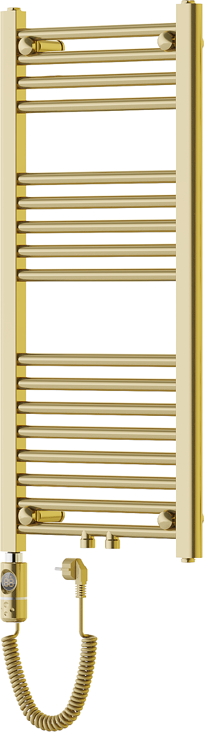 Mexen Mars is an elegant electric radiator in gold color measuring 900 x 400 mm, which effectively heats any room with its 300 W power. Made of durable steel, it features 17 heating rods and LED touch control. Protection against dry operation and a built-in thermostat ensure safe use, while the Sensitive and Comfort functions allow precise temperature settings. The radiator requires filling with water and is resistant to corrosion thanks to a durable coating.