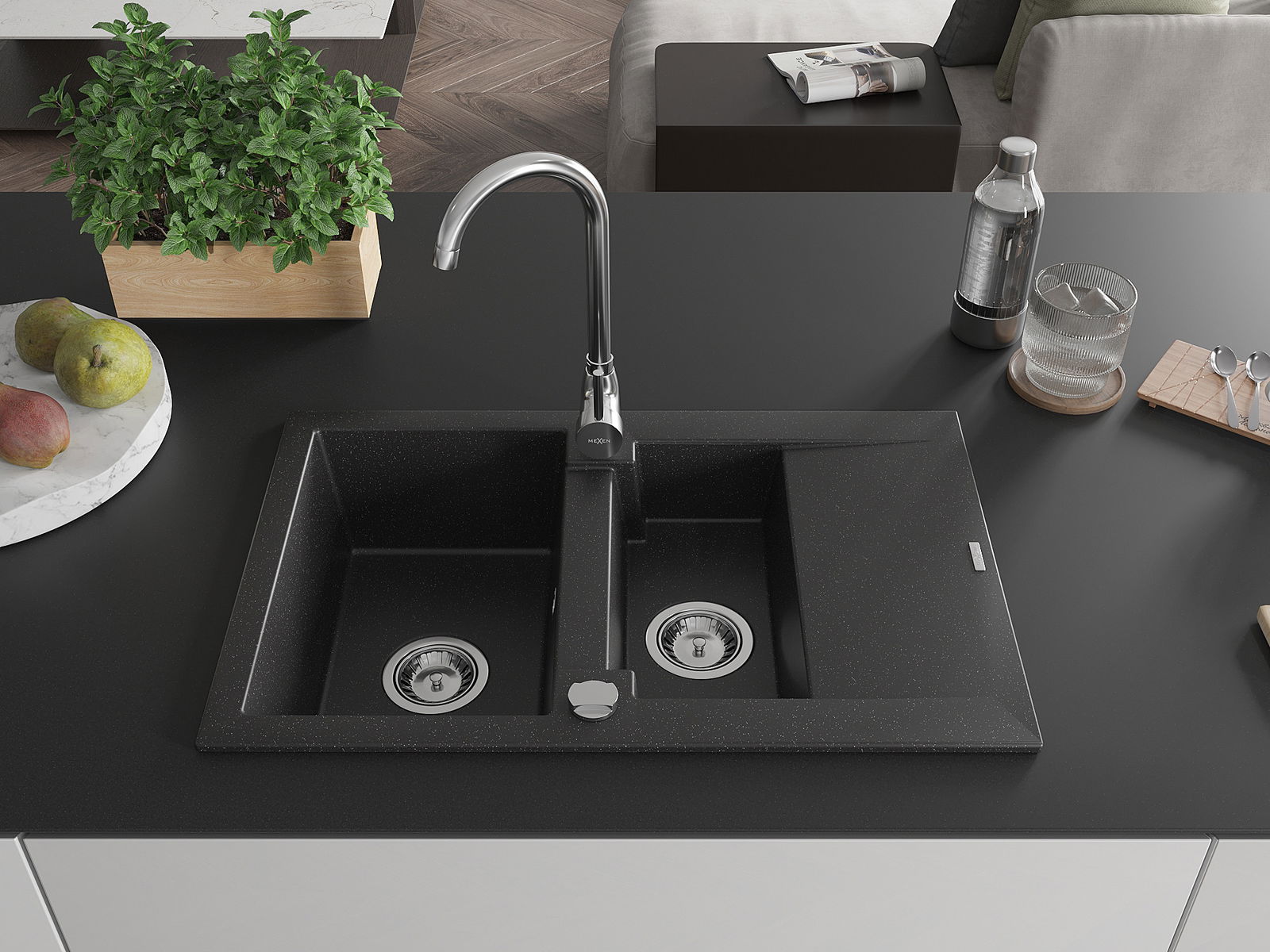 The sink is made of high quality granite. It is an elegant and, above all, practical complement to every kitchen, regardless of its style. High quality and granite durability ensure many years of use.