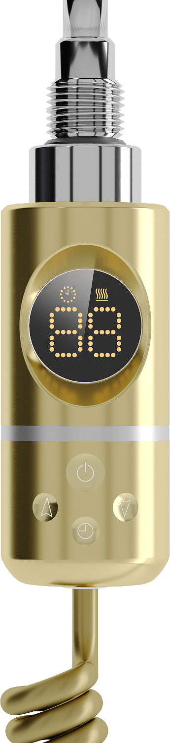The Mexen FA-I 900 W Electric Heater, Gold is a modern device with a total length of 866 mm and heating power of 900 W. Equipped with a 1.5 m connection cable and G 1/2" thread, it ensures efficiency and safety with a protection rating of IP44. It features functions such as Sensitive, Comfort with drying option, and parental lock. The LED display informs of the operating mode, and additional protection prevents dry operation.