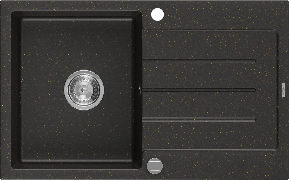 Mexen Bruno granite sink, 1-bowl with drainer 795 x 495 mm, black/gold metallic, chrome siphon- 6513791010-75
