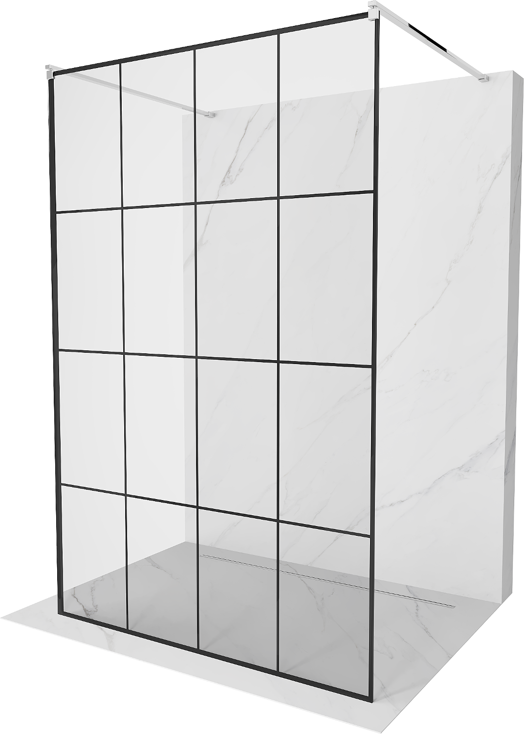 Mexen Kioto freestanding shower wall 150 x 200 cm, black grid 8 mm, chrome - 800-150-002-01-77