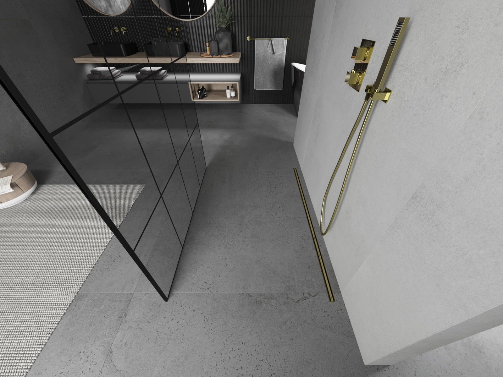 Mexen Kioto freestanding shower wall 150 x 200 cm, black grid 8 mm, gold - 800-150-002-50-77