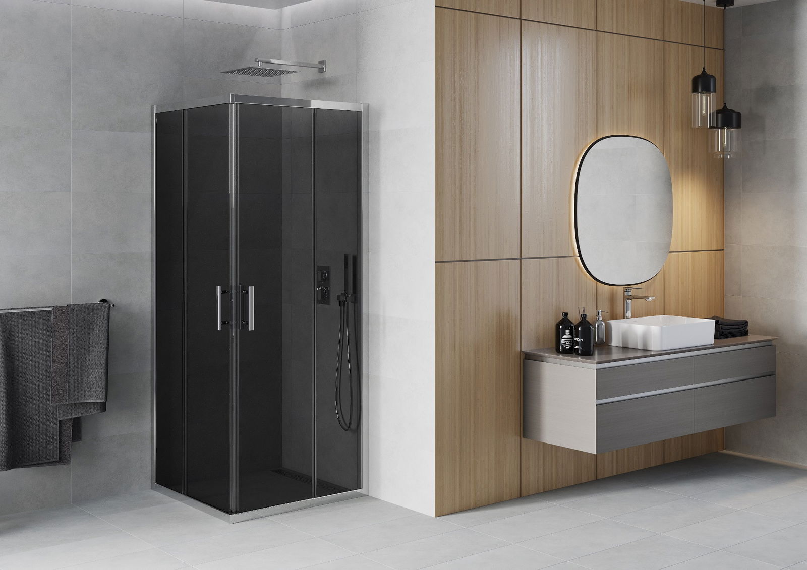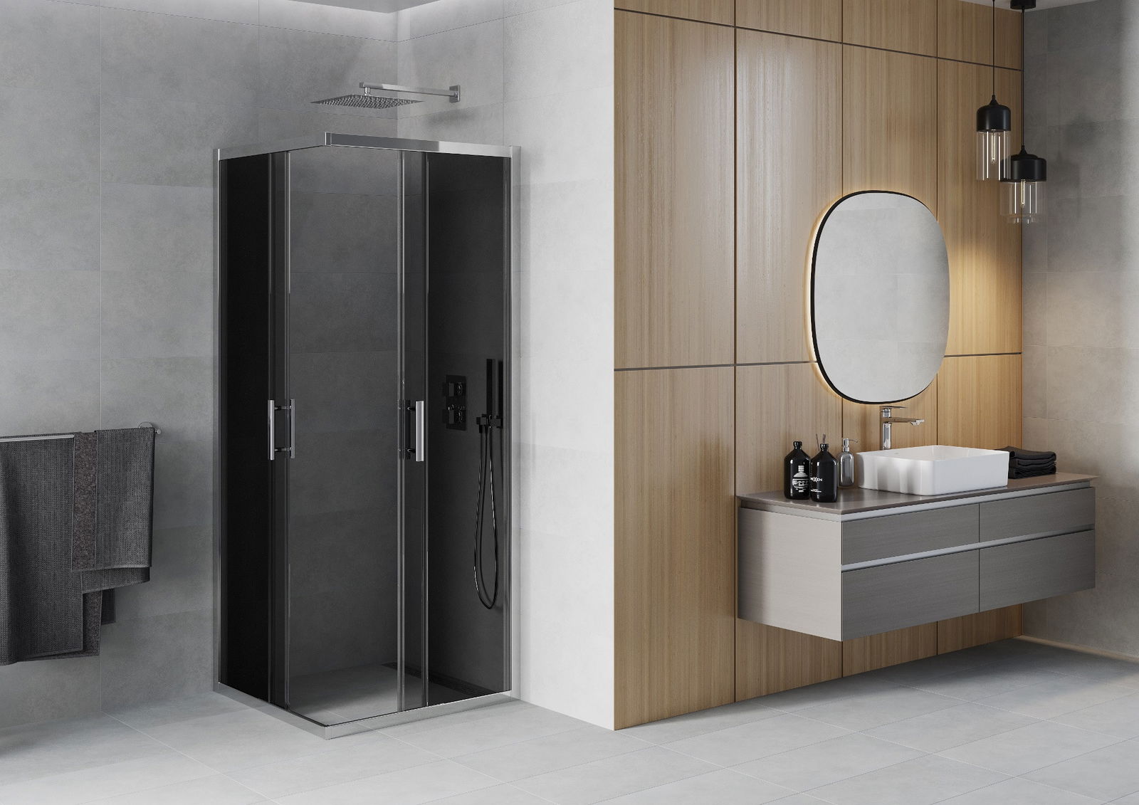 Sliding doors move around special guides and do not require additional space to open them, so they will work in smaller bathrooms. Thanks to double rollers made of durable plastic, their movement is fluid.