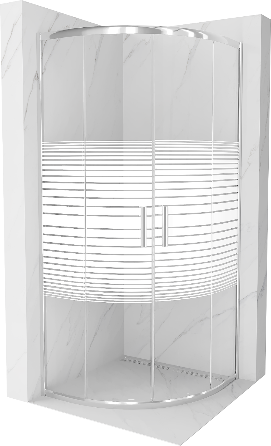 Mexen Rio semi-circular shower enclosure 80 x 80 cm, white stripes, chrome - 863-080-080-01-20
