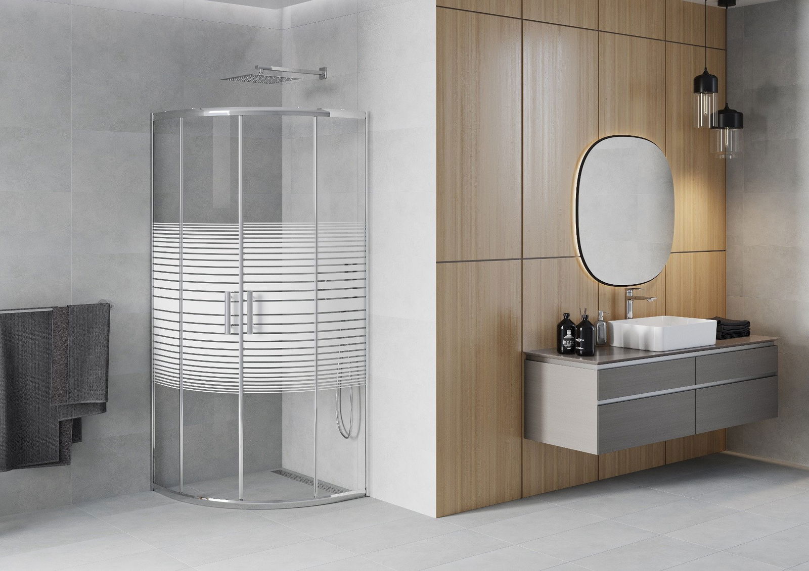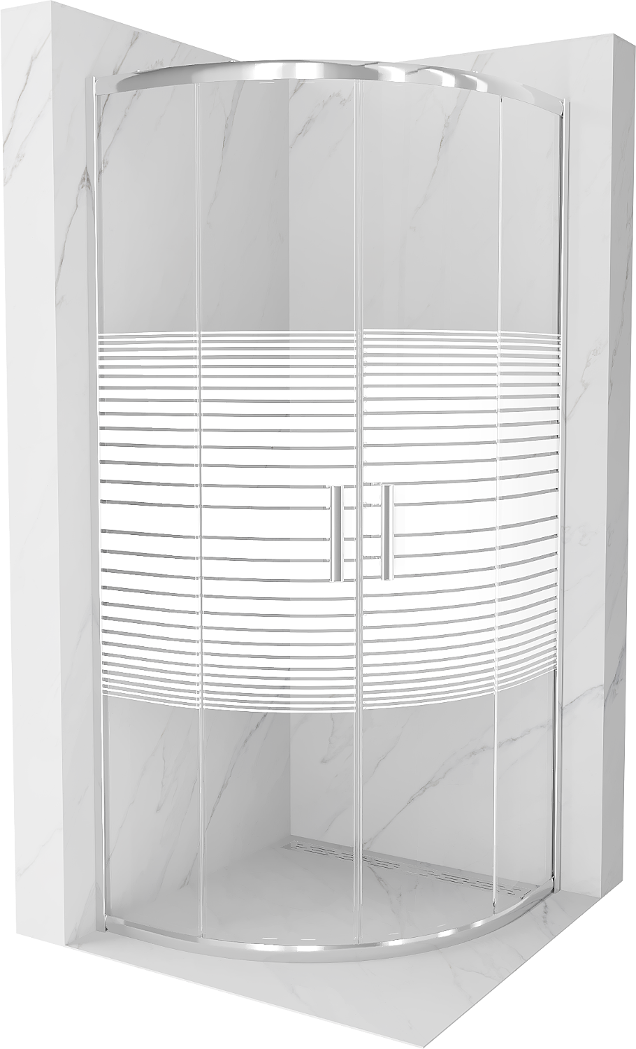 Mexen Rio shower enclosure semicircular 80 x 80 cm, white stripes, chrome - 863-080-080-01-20