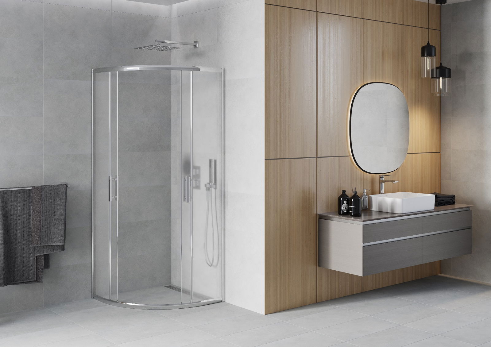 The handy and comfortable handle is made of durable and resistant metal. The fashionable shape, combined with a finish matching the color of the profiles, gives the whole a modern and stylish look, emphasizing the aesthetics of any bathroom.